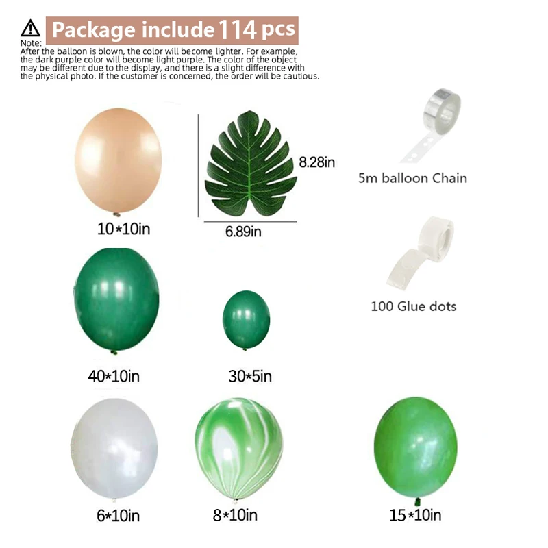 10 шт 10-дюймовые латексные шары цвета шампанского золота40 шт 10 дюймов темно-зеленые латексные шары30 шт 5 дюймов темно-зеленые латексные шары15 шт. 10 дюймов светильник зеленый латексные шары6 шт. 10 дюймов белые латексные шары8 шт. 10 дюймов воздушные шары Цвета Агата5 шт 8 дюймов поддельные листья1 шт. gule1 шт. 5 м Длинная цепочка для воздушных шаров