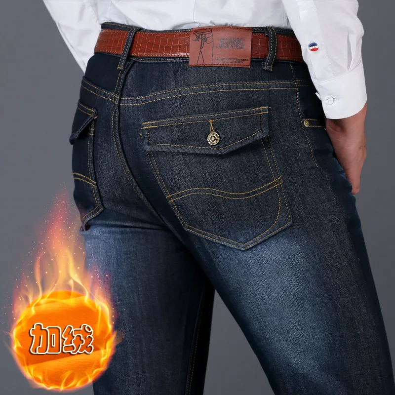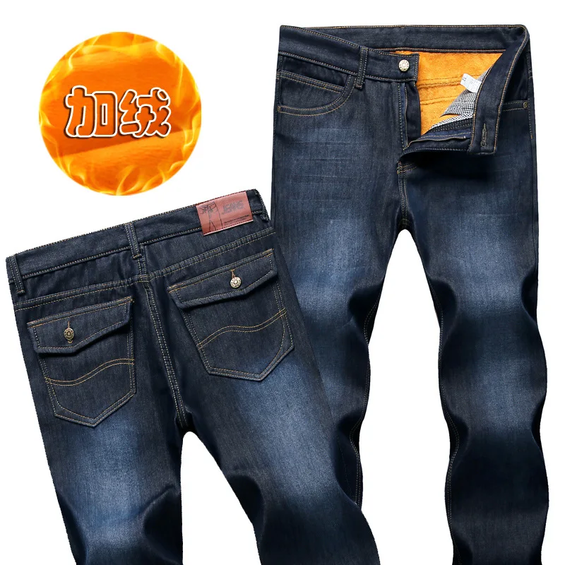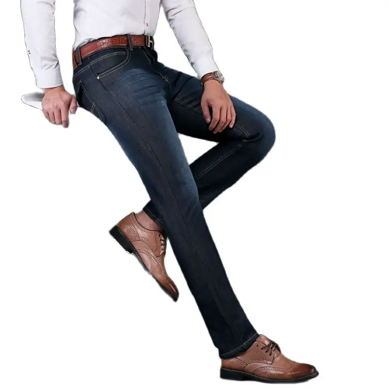 Джинсы мужские прямые в классическом стиле, Брендовые брюки из денима, деловой стиль, повседневные эластичные, темно-синие, Осень-зима