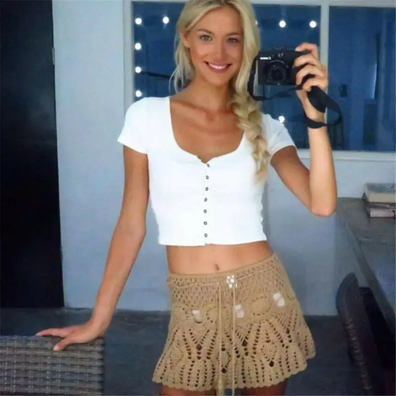 Aproms Хлопковые вязаные крючком мини-юбки в стиле бохо Летняя женс...