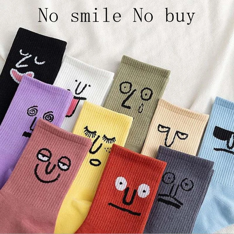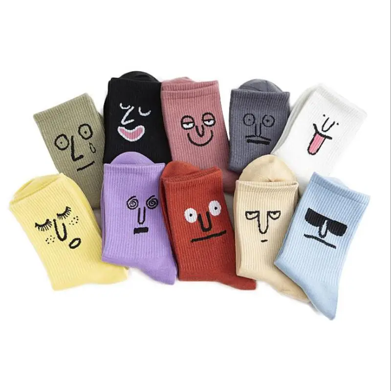 Милые женские носки-сюрпризы на осень и зиму, модные красочные веселые корейские носки Harajuku с забавным мультяшным лицом, хлопковые короткие носки