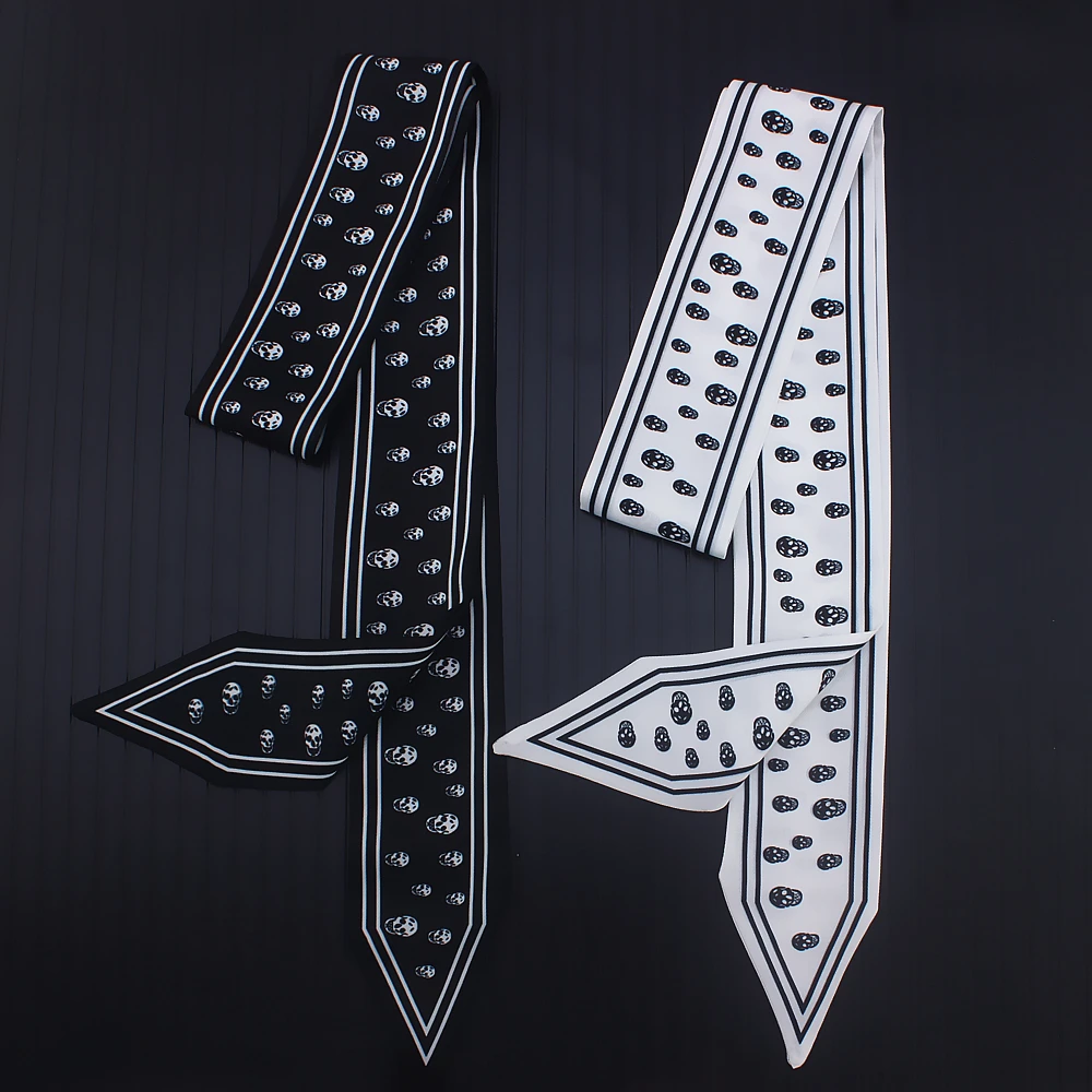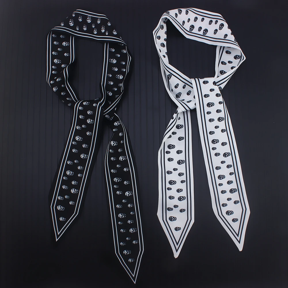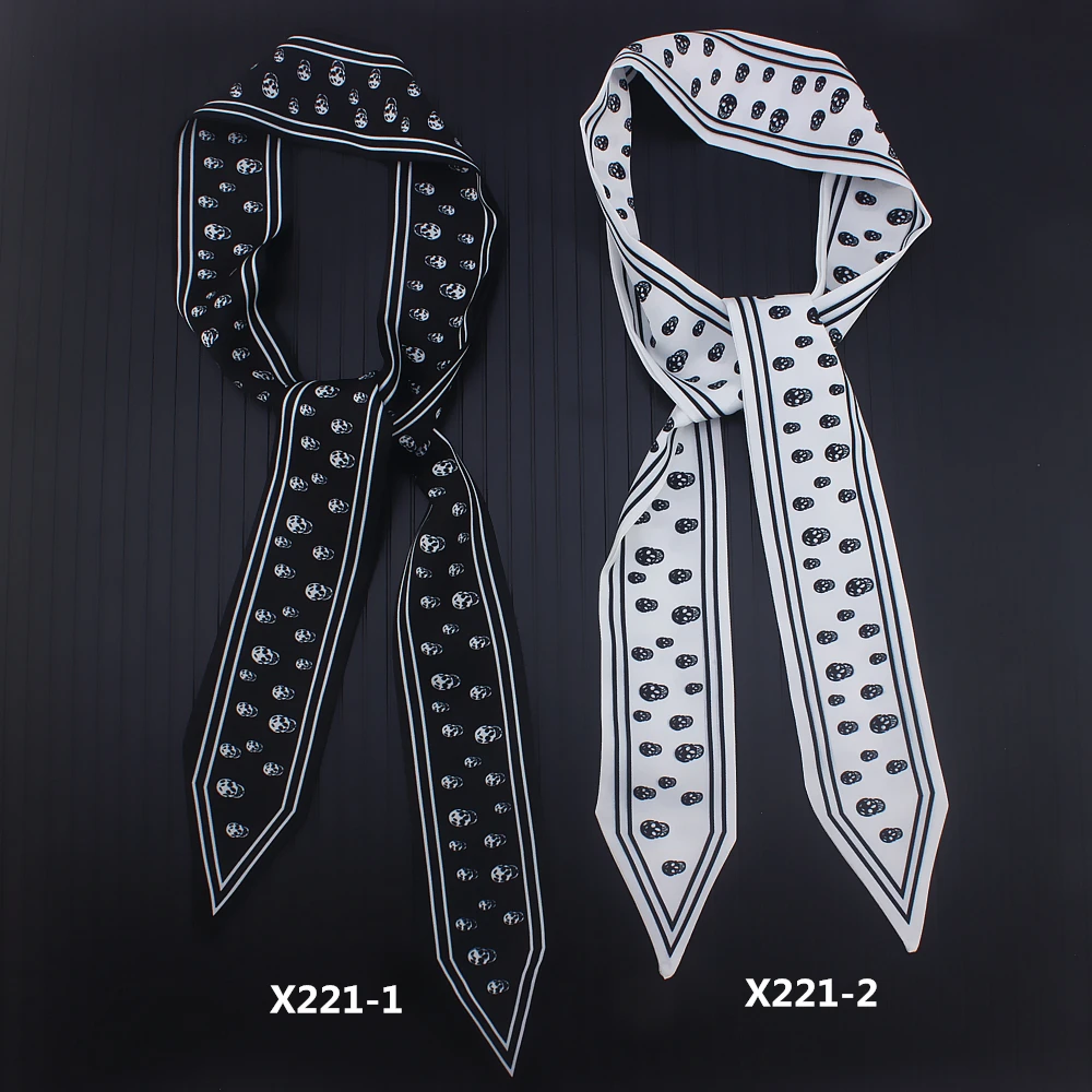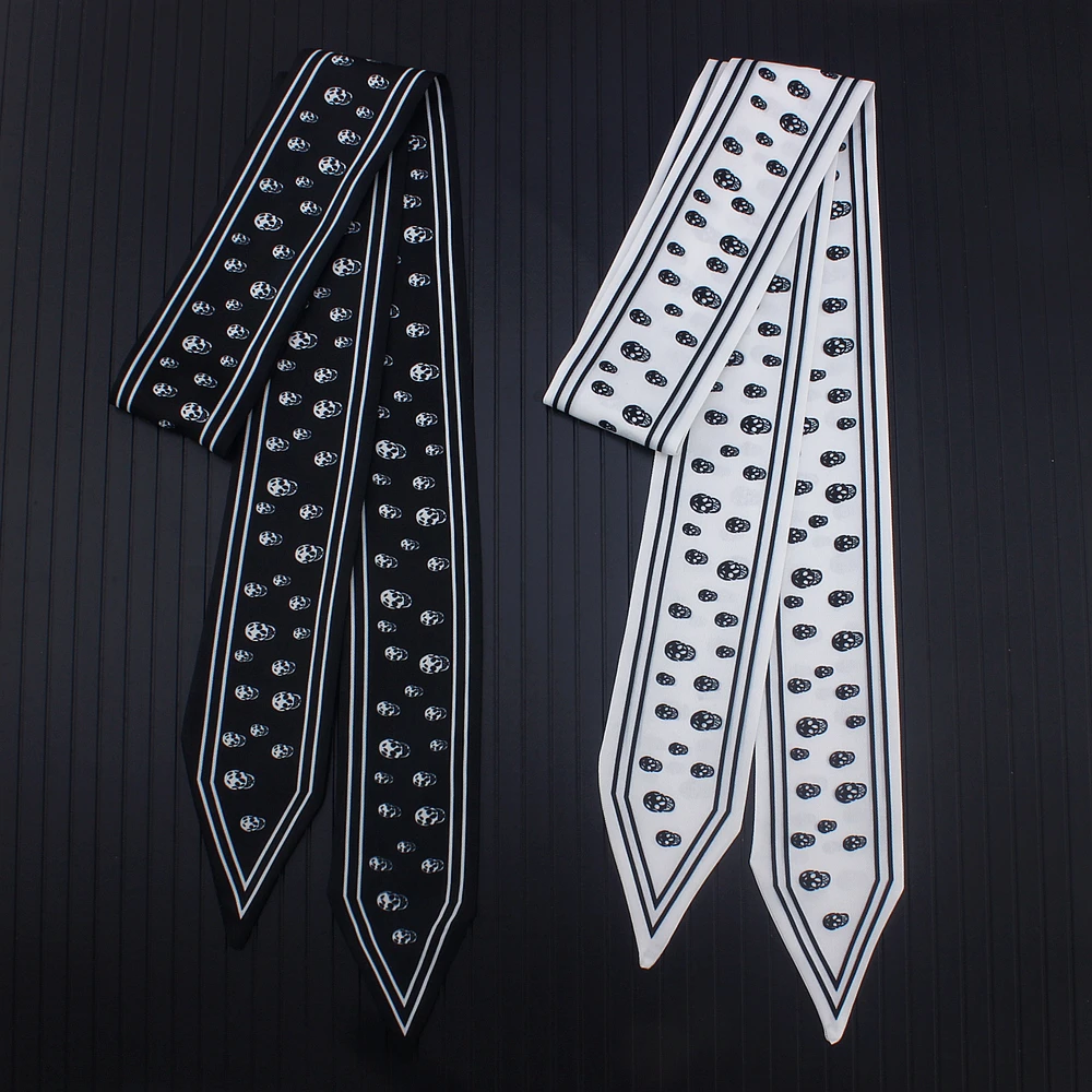 120 см * 5 см саржевый Шелковый маленький длинный женский шарф, шарфы с принтом черепа, острый угол, модный бренд, повязка на голову, сумка, лента для галстука-бабочки