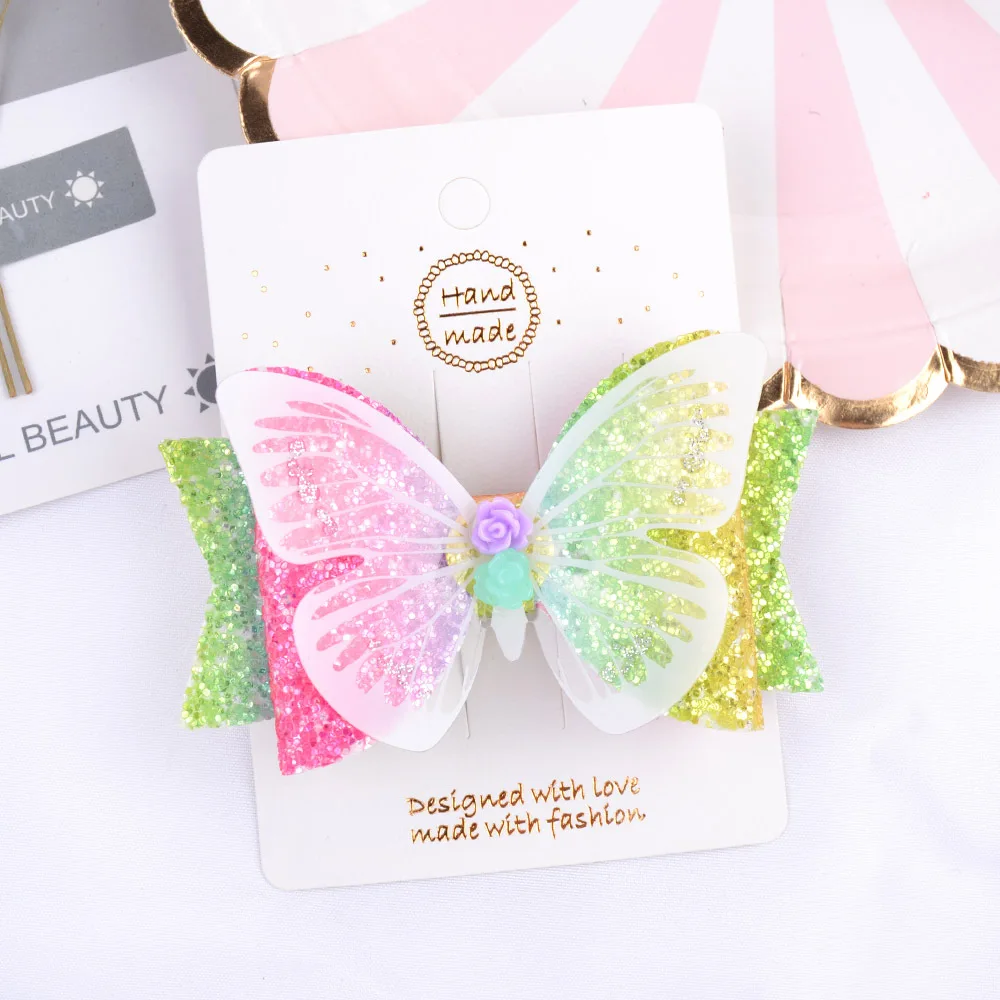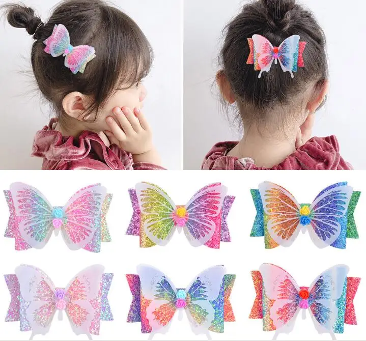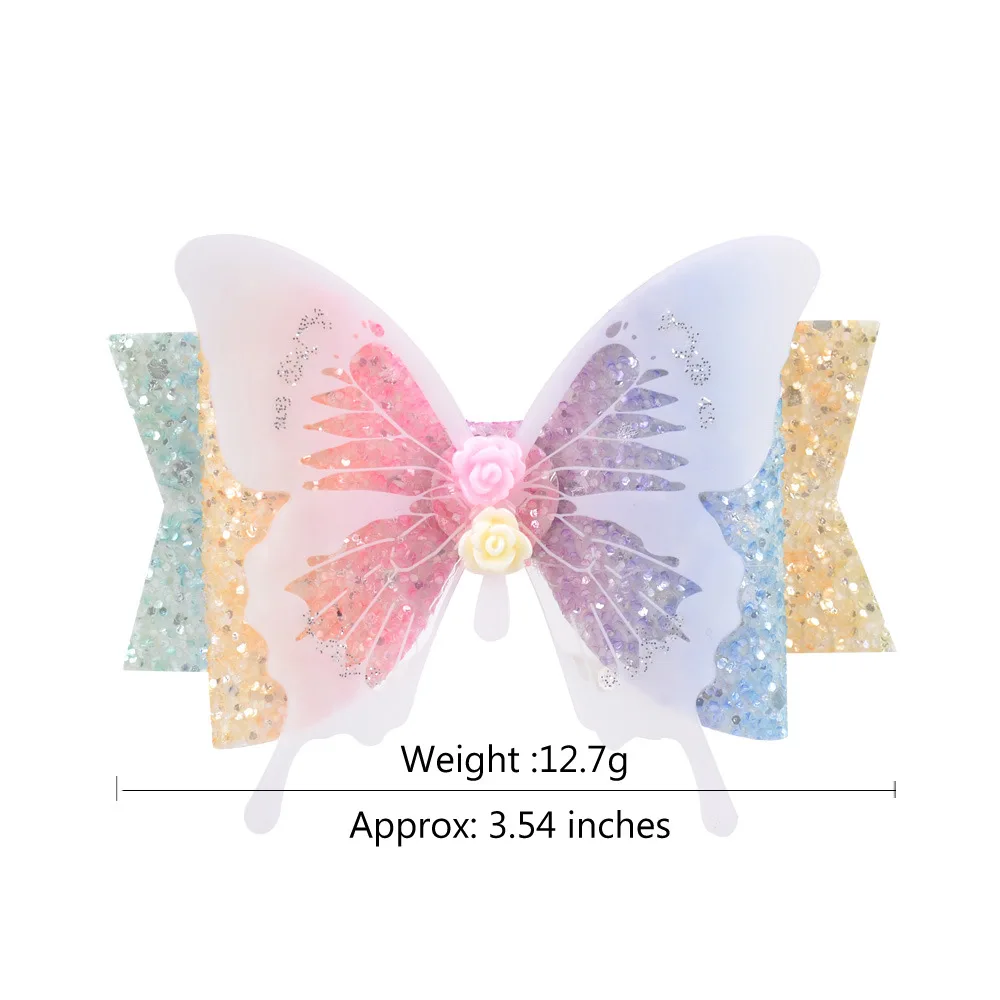 36 шт./лот 3,5 "Блестящая бабочка заколки для волос блестящие банты для волос с зажимом для танцевальной вечеринки заколки для волос аксессуары для волос для девочекБантРазмер: 9 см длина