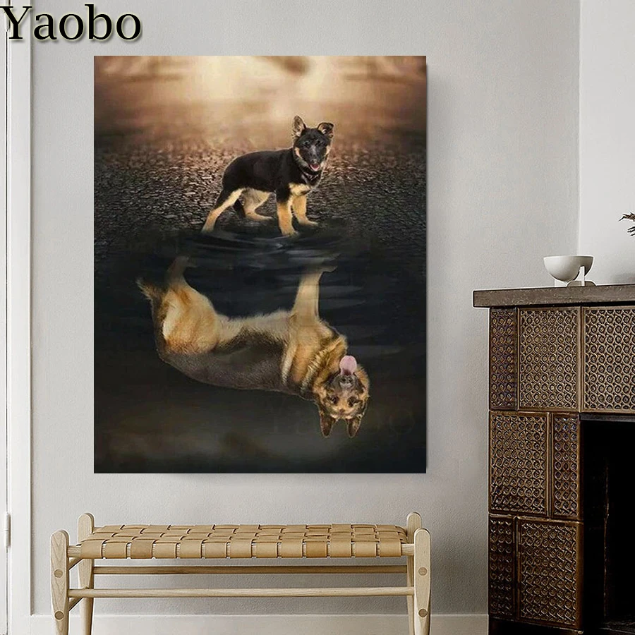Немецкая овчарка Алмазная картина полностью квадратная круглая Алмазная мозаика вышивка Стразы мозаичная наклейка украшение на стену,