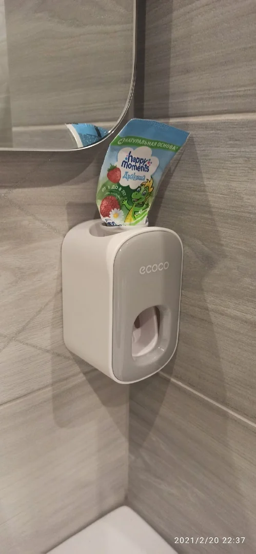 Delivered quickly. In less than 2 weeks. Strong enough plastic toothpaste dispenser. The plastic is pleasant to the touch. It stuck to the tile well. --------------------------------------------------------------------------------------------- Доставили быстро. Менее, чем за 2 недели. Достаточно крепкий пластмассовый дозатор зубной пасты. Пластмасса приятная на ощупь. На кафель приклеился хорошо.