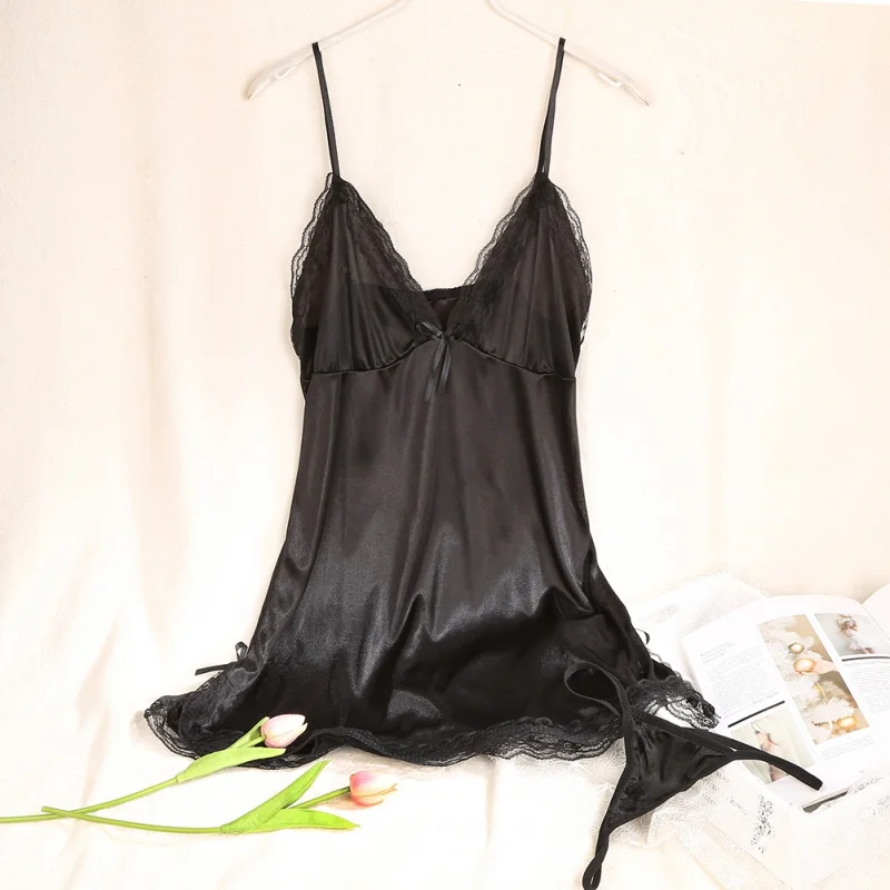 Ночная рубашка женская, шелковая, атласная, с глубоким V-образным вырезом