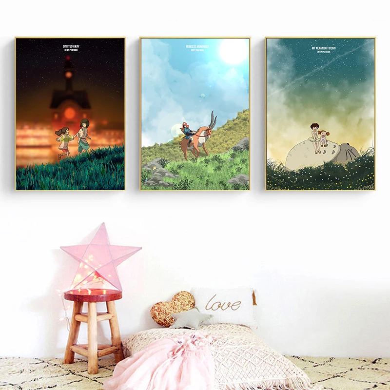 Аниме фильм Hayao Miyazaki, настенное искусство в скандинавском стиле, холст, картина, постер для гостиной, украшение для дома