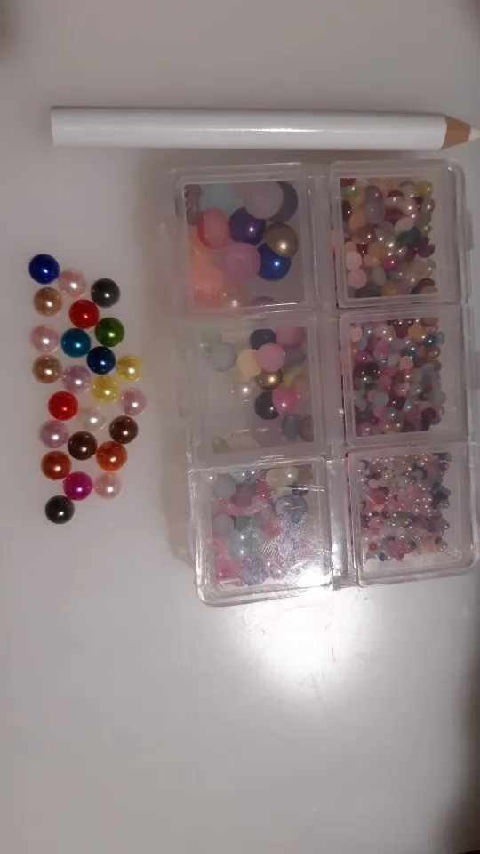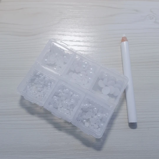 Получила очень быстро, всё хорошо упаковано. Размеры разные, от крупных до самых мелких (даже не знаю, как использовать такие маленькие). Карандаш белого цвета также прилагается. В целом, всем довольна.