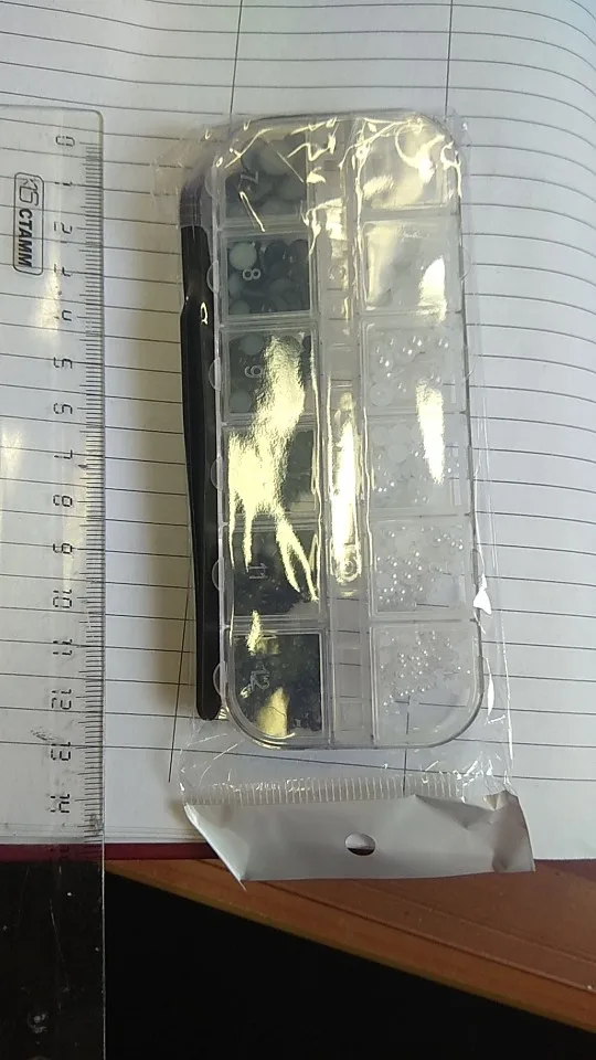 Отличный продукт. Как на изображениях. Включенные в комплект пинцеты идеально подходят для работы с покупателями. Коробки очень удобные, так как они разделены на тона, а также, каждая мера имеет свою отдельную крышку. Я рекомендую его.