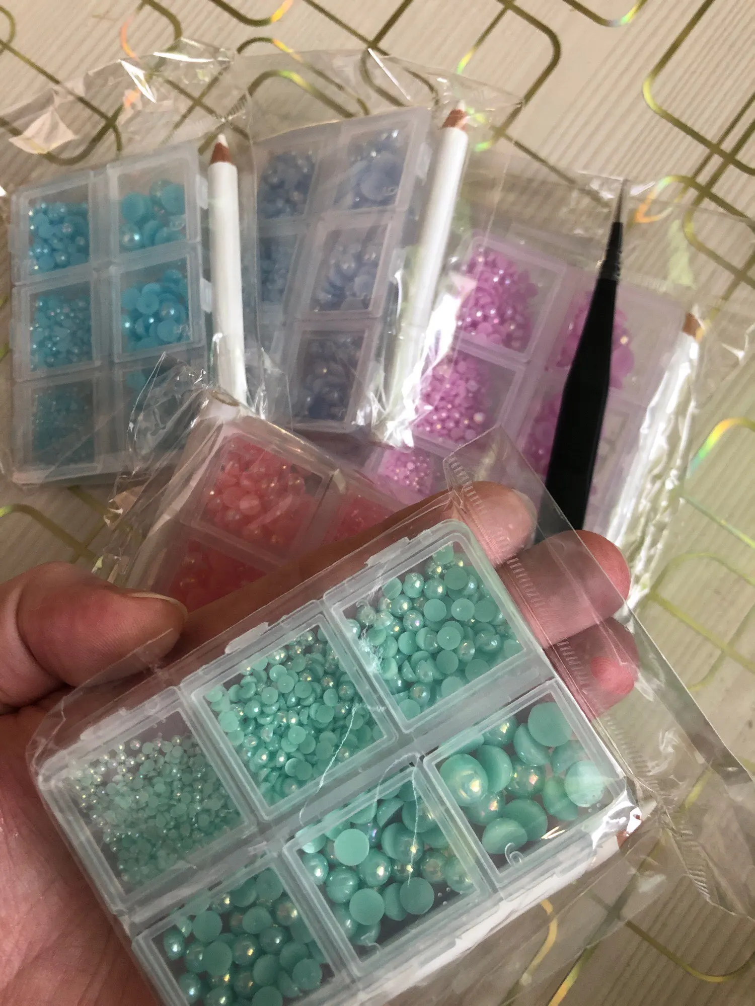 Полукруглый жемчуг разных размеров, 1000 шт.1 коробка, имитация плоской спинки, белые бусины клей на смоле, для самостоятельного изготовления ювелирных изделий, для ногтей