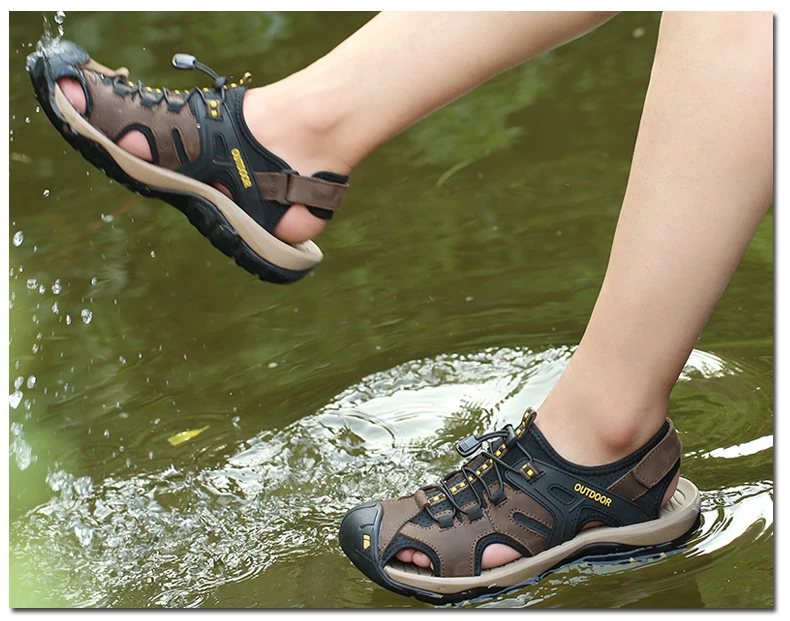 Пляжные сандалии из натуральной кожи, мягкие мужские дышащие летние...
