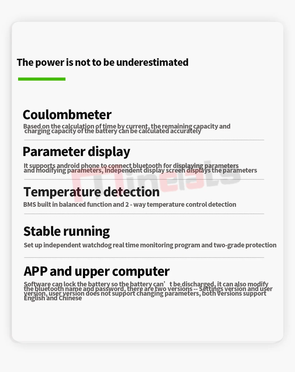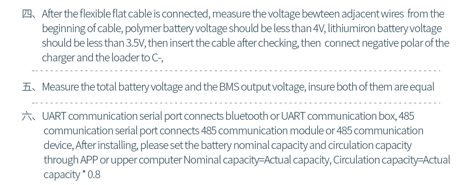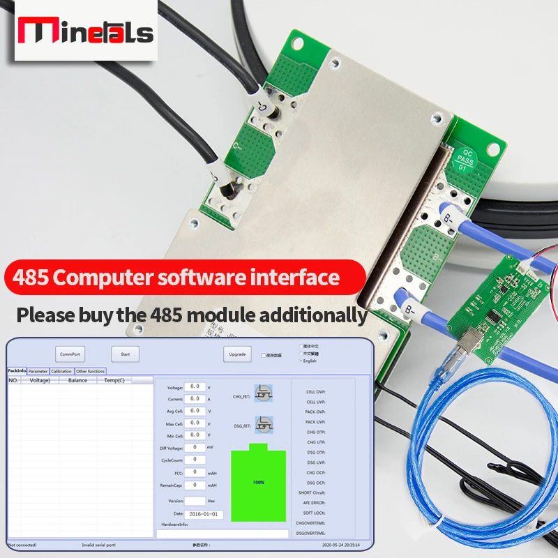 1. Если вам нужно подключить ваш мобильный телефон, вам нужно купить BMS с коммуникационная плата интерфейса UART порт или UART/485 двойной порт связи, а затем добавить модуль bluetooth.2. Если вы Подключите компьютер только для чтения данных, вам нужно купить BMS, затем добавить UART box или 485 модуль,3. Если вам нужно подключить ПК и мобильный телефон, пожалуйста, купите UART/RS485 двойная связь BMS, затем купите модуль Bluetooth и Модуль RS485Примечание: RS485 Одиночная связь может подключаться только к программному обеспечению верхнего компьютера, не может быть подключен к модулю Bluetooth и программному обеспечению верхнего компьютера одновременно