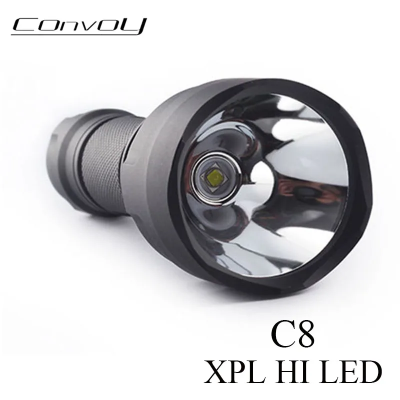 Светильник фонарик Convoy C8 с XPL HI, светодиодный фонарик 7135*8, фонарь для кемпинга, работы, полиции, тактический фонарь, 18650, черный свет