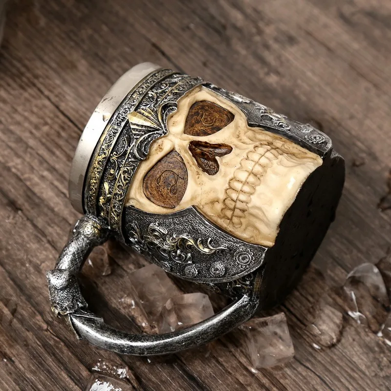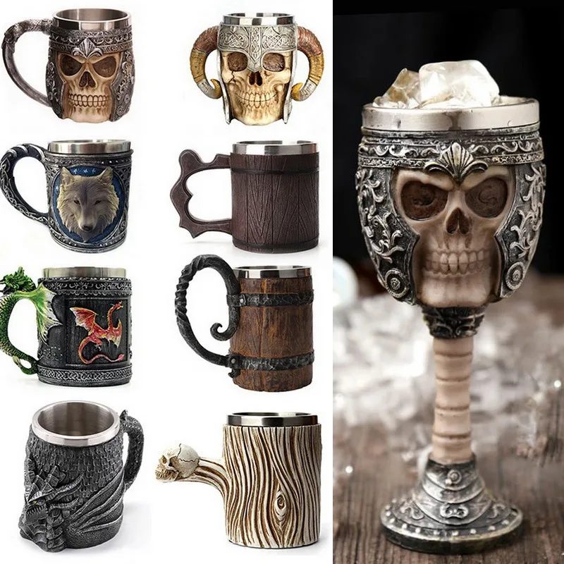 Кружка пивная в стиле викингов, деревянная Баварская кружка с имитацией деревянного корпуса, с двойными стенками, с металлической изоляцией, в стиле ретро, с черепом