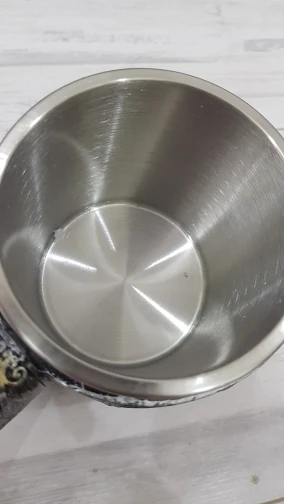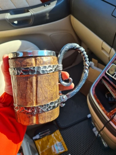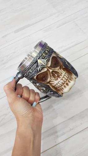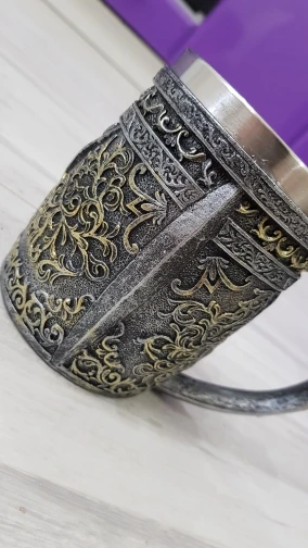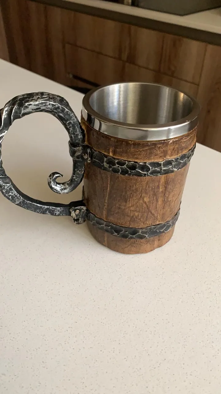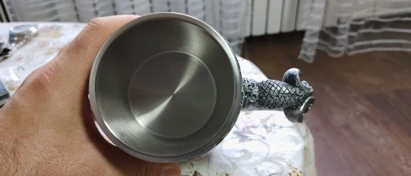 Чаша смещена относительно декоративной части. Не очень удобно пить из-за квадратного профиля чаши, так не делается. У викингской кружки ручка неудобно сидит в большой лапе, женщине в принципе понравилось. ну и лучше не ронять это чудо, через пару дней дней после получения, уронил со стола и лопнула вся кружка от ручки.