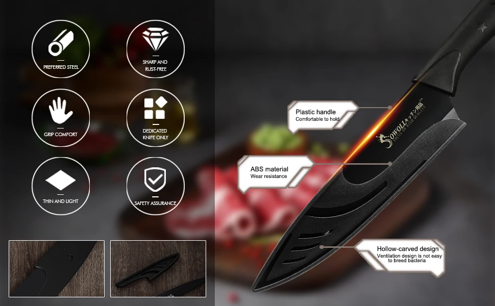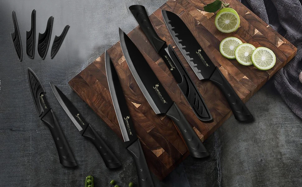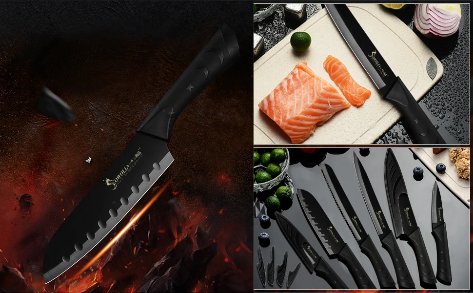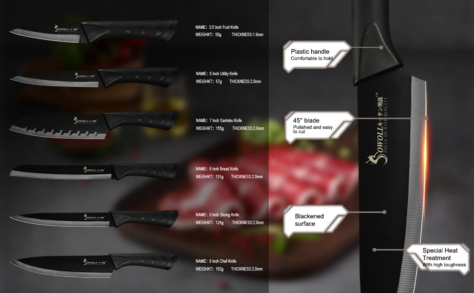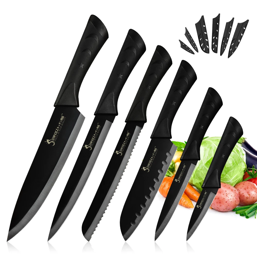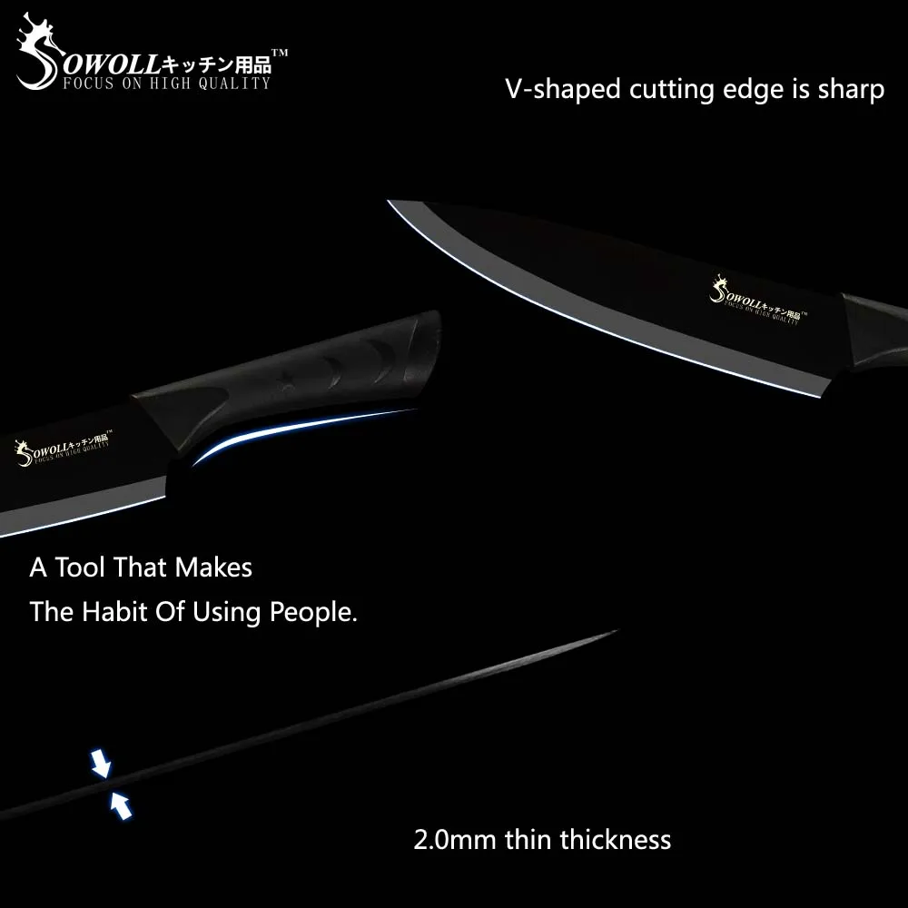 Набор ножей из нержавеющей стали Sowoll 3CR13, 8 карманов с рулонной сумкой и черным лезвием из нержавеющей стали, эргономичная ручка, шеф-нож для приготовления пищи