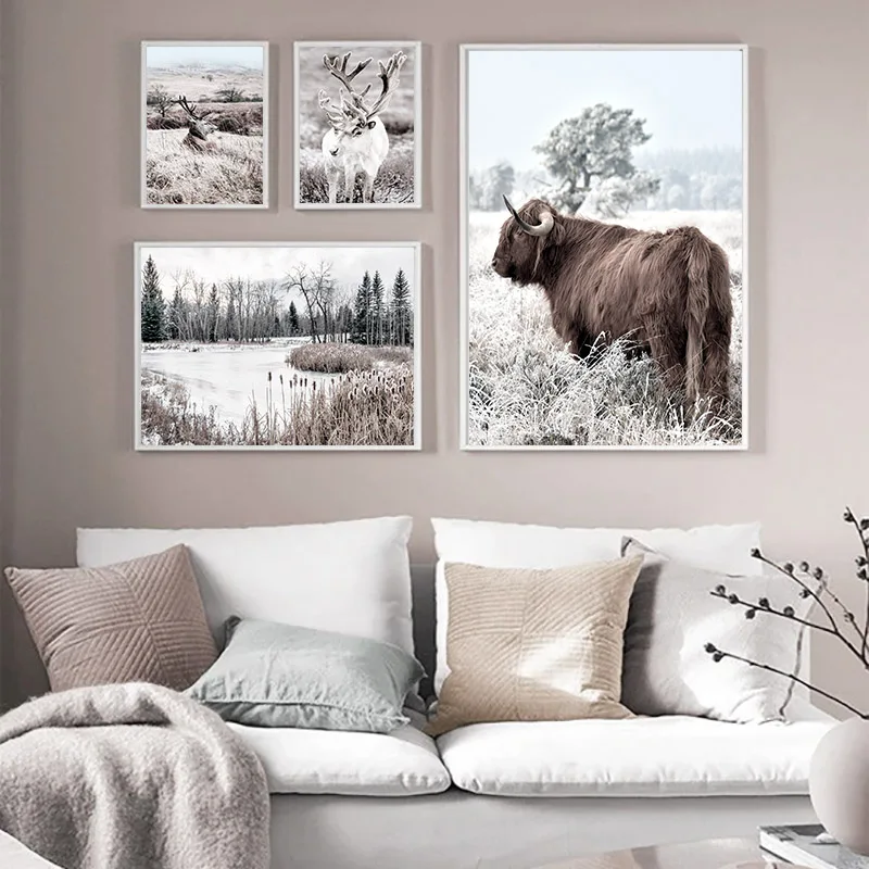 Скандинавский зимний природный пейзаж плакат Принт олень Рид Вуд, холст, картина животное, настенное искусство, картина, скандинавский стиль, домашний декор
