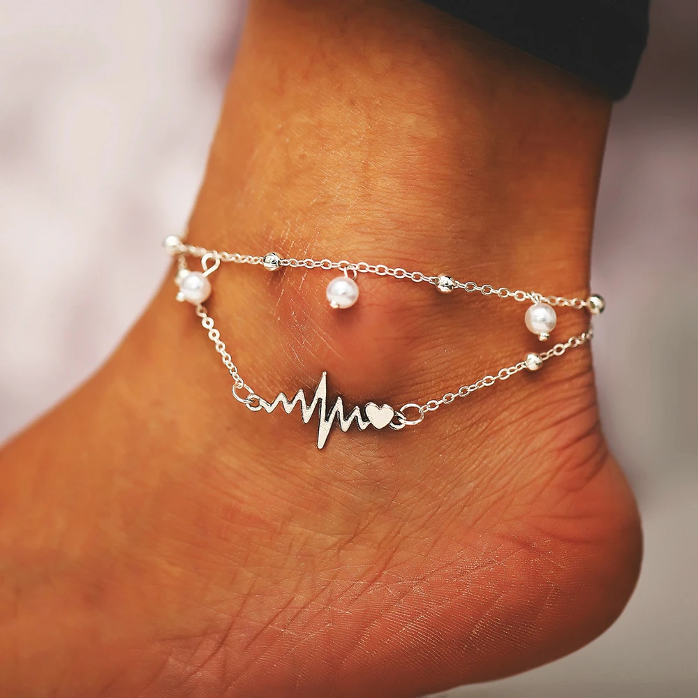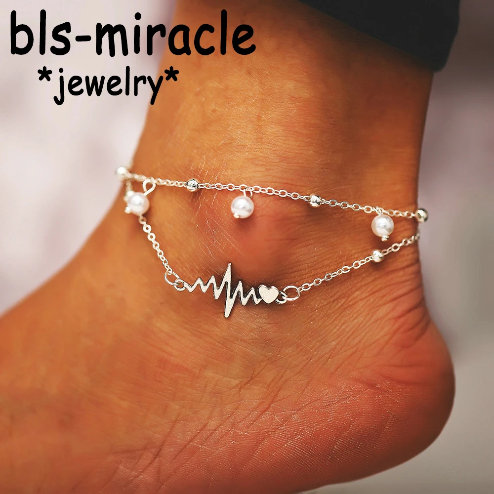 Модный браслет на ногу с изображением пульса, браслеты на лодыжку, ...