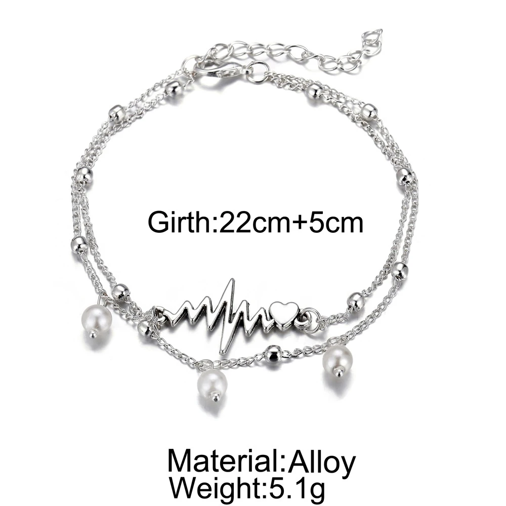Пляжный ЭКГ, многослойный браслет на ногу с двойной жемчужиной, ком...