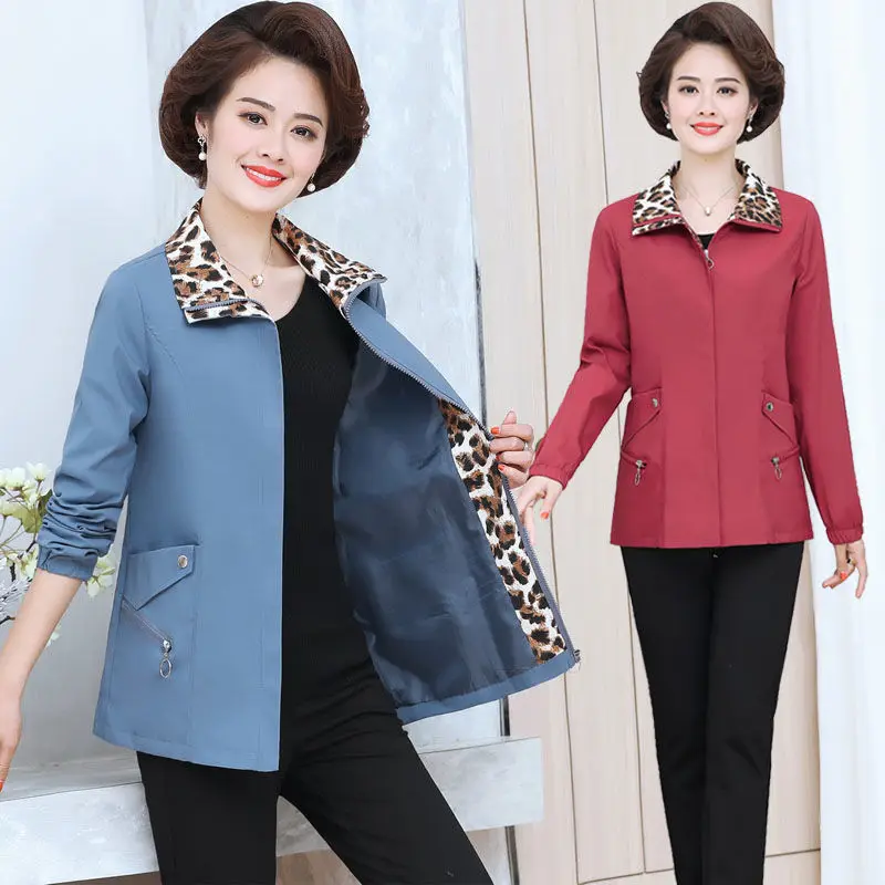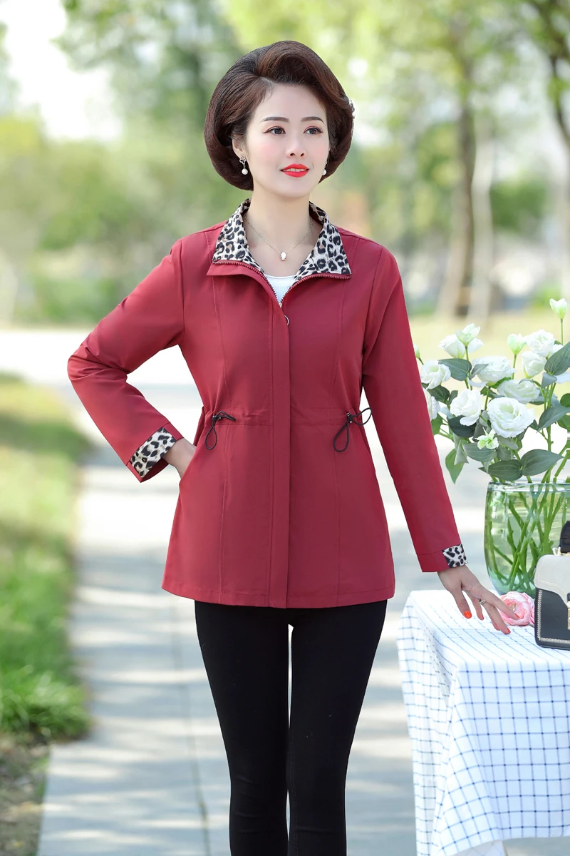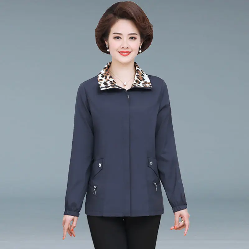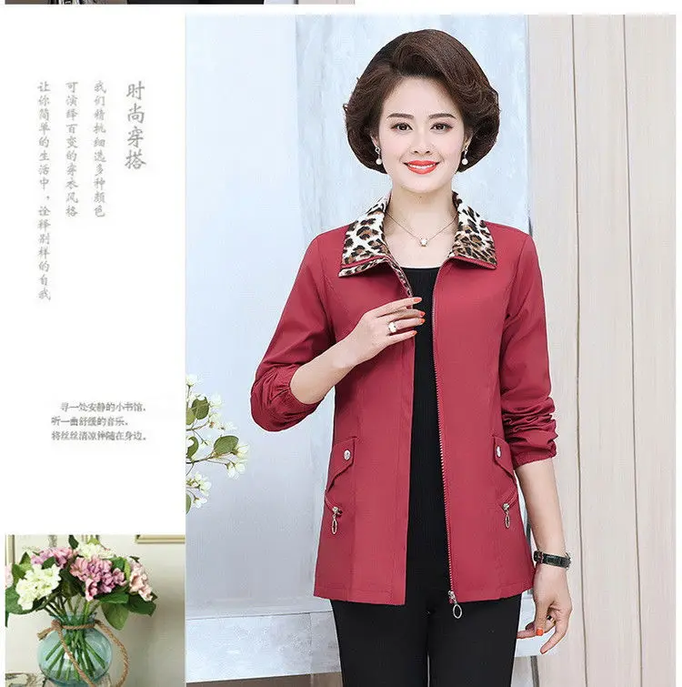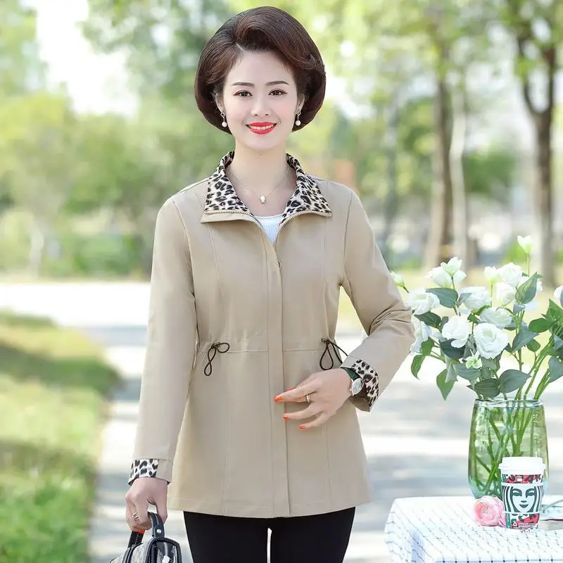 Женская ветровка среднего возраста 2020, весенне-осенняя куртка, пальто с длинным рукавом, на молнии, с леопардовым рисунком, Повседневная Верхняя одежда и пальто