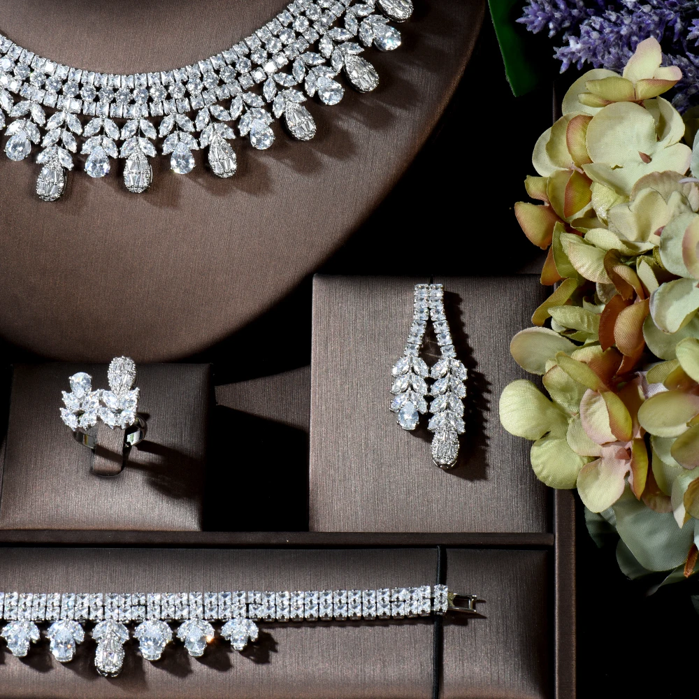 HIBRIDE роскошные 4 шт. Свадебные циркониевые ожерелья Серьги Кольц...