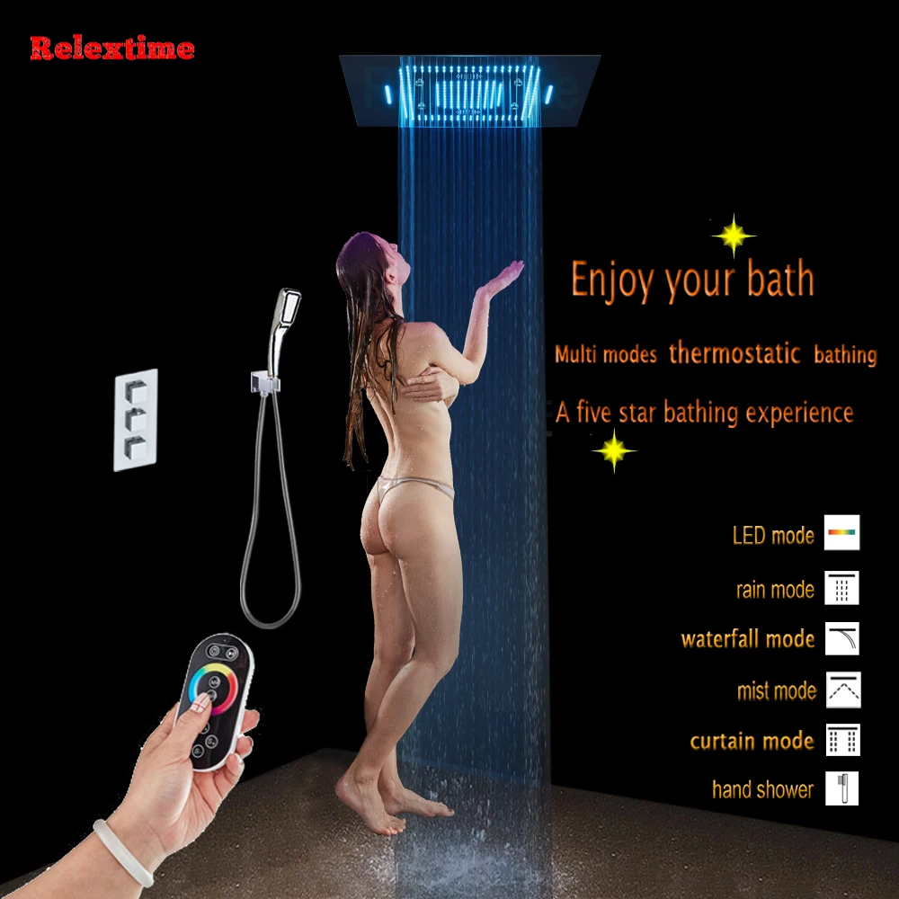 Новый стиль, светодиодный набор для душа для ванной комнаты, 6 выходов, термостатический смеситель с насадкой, светящийся светодиодный потолочный Душ, дождевая насадка, водопад, занавеска, распылитель HF8402