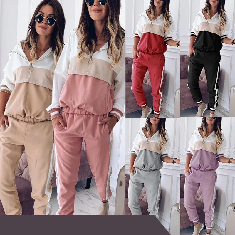 Спортивный костюм женский из 2 предметов, кофта с длинным рукавом и штаны, осень 2020