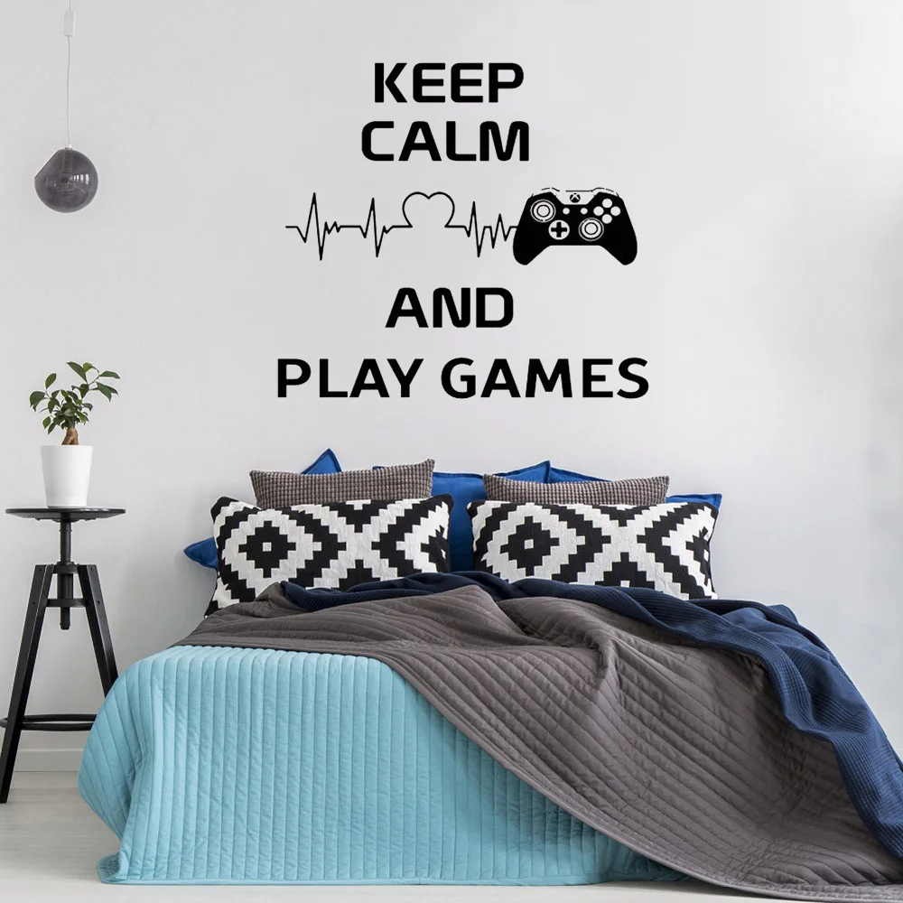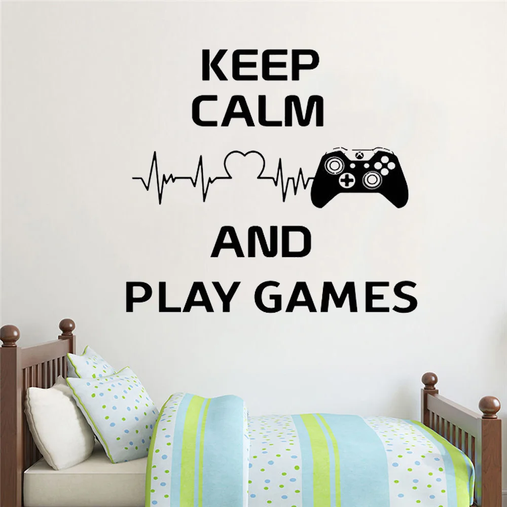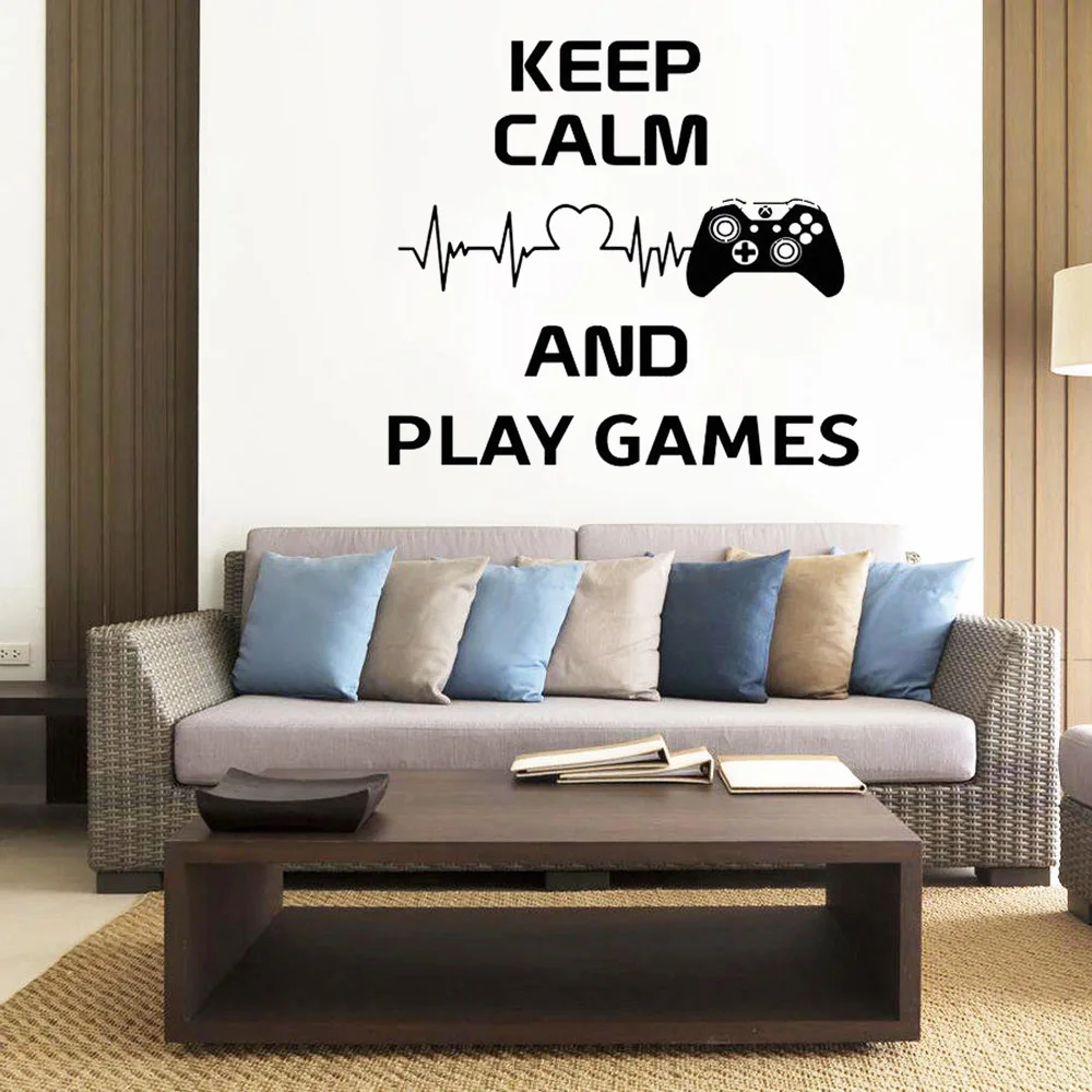 Игровой контроллер Keep Calm And Play Наклейка на стену с цитатами, виниловый Декор для дома, игровая комната для мальчиков, наклейки, настенная переводная пленка
