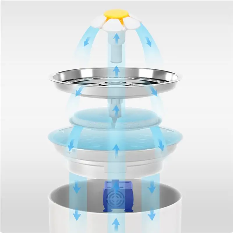 Особенности:5-ти слойной глубокой очистки для чистой водыУникальный сменный дизайнерский фильтр эффективно фильтруетсяОбрастаниеВолосы, запах, отложений и хлор по 5-ти слойной система очистки. Следовательно, фонтан может дать чистую воду для домашних животных и уменьшить риск развития болезни. Угольный фильтр помогает удалить запахи и плохой вкус.Дизайнерский насосУникальный дизайн Синий Насос DR-DC160 разворачивается с заказной присоской, чтобы уменьшить шум к минимуму. Рабочее колесо высокого качества может гарантировать долговечные продукты для использования.Высокое качествоФонтан для домашних животных изготовлен из экологически чистого, нетоксичного, без запаха и прочного материала. Простая БЫСТРОРАЗЪЕМНАЯ структура предназначена для легкого удаления и очистки.2. Емкость 4LНе нужно часто пополнять воду, и она может удовлетворить питьевые потребности кошек, собак, птиц и других домашних животных различных размеров. Не нужно беспокоиться о том, что ваши питомцы не получают достаточно свежего напитка, когда вы идете на работу.ВизуальныйОснащен светодиодный, который вы можете увидеть уровень воды. При работе светодиодный индикатор синего цвета. Продукт не работает до тех пор, пока уровень воды не превысит уровень насоса. Питание от USB кабеля. Безопасная, гигиеническая, удобная верхняя полка для посудомоечной машины.3 стиля распыления водыЕсть 3 режима распыления воды, привлекая вашего питомца, чтобы пить больше воды.Цветочный водопад: подходит для домашних животных с длинными волосами;Цветочки: такие нежные Домашние животные, как этот, и птицы любят купаться под водопадом;Фонтан: много воды, идеально подходит для домашних животных, которые любят много пить Примечание: фильтрующий элемент должен быть заменен один раз в месяц. Спецификация:Тип: фонтан для водыМатериал: нержавеющая сталь/ABSЦвет изделия: белыйРежим: Питание от USBВода Ёмкость: 2,4 литров (80 унций)Вход Напряжение: 5V,1AМощность Потребляемая мощность: 1,5 WВодонепроницаемость: IP68Кабель Длина: 1,6 M/5.2ftРазмер изделия: прибл. L18.6 см * w18.6 см * h13 см/7,3*7,3*5,1 "(Д * Ш * В) Посылка:1 * водный фонтан для домашних животных1 * угольный фильтр1 * USB кабель1 * Руководство пользователя на английском языке1 * коробка для посылка