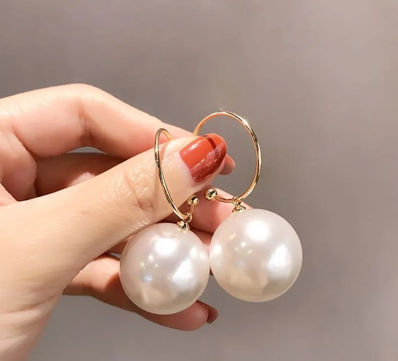 Женские круглые серьги-кольца с искусственным жемчугом, большие серьги золотого цвета в Корейском стиле, эффектные украшения, 2022