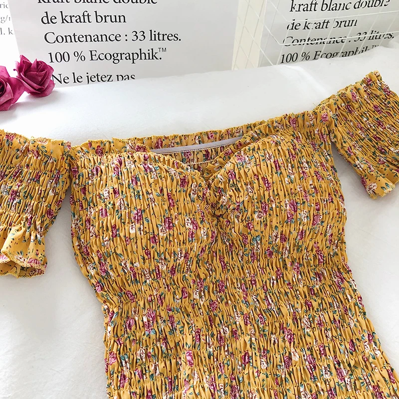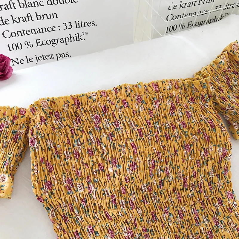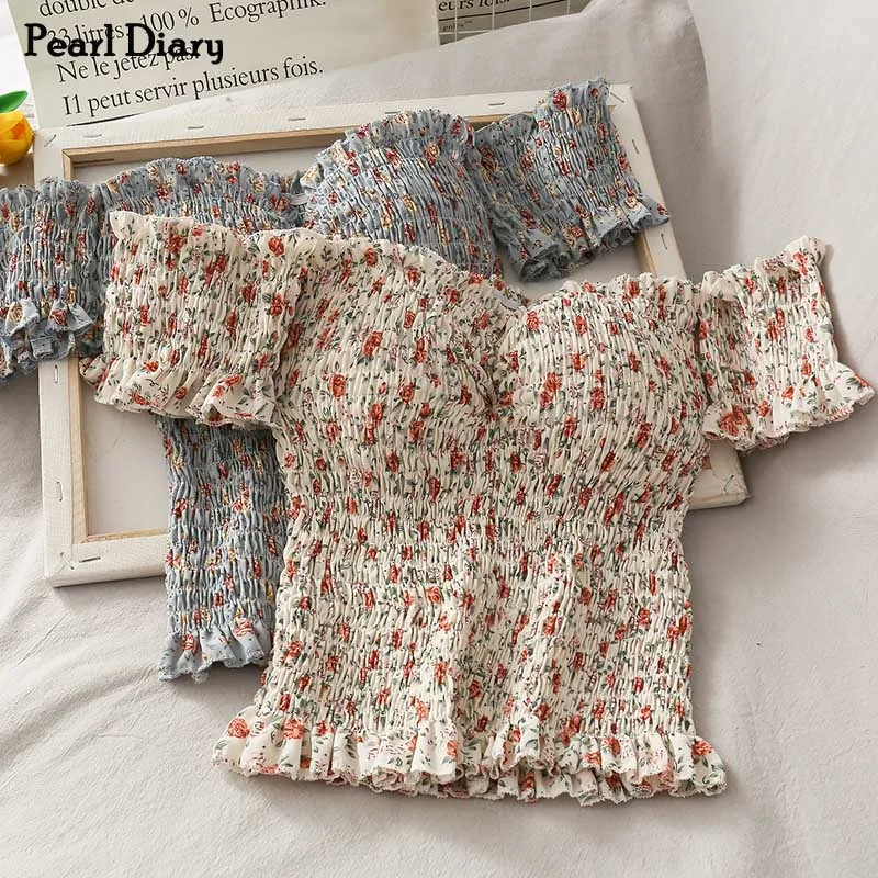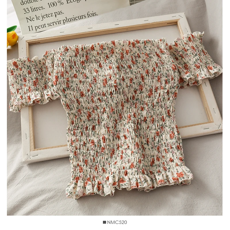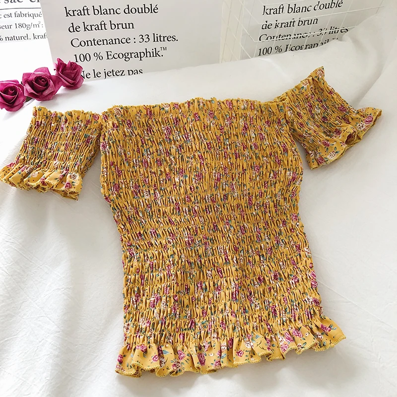 Женский топ с открытыми плечами и цветочным принтом, эластичный, с драпировкой, облегающий Топ