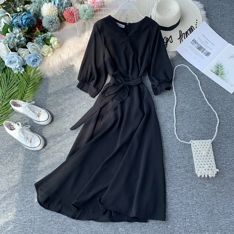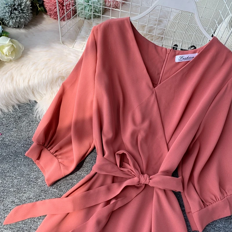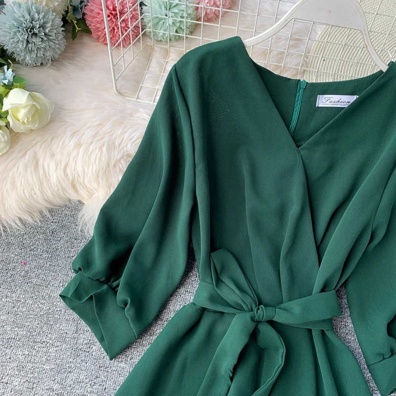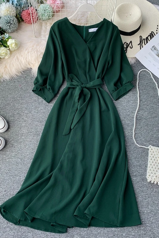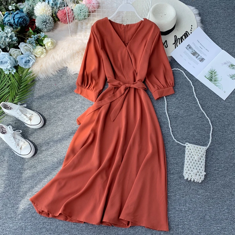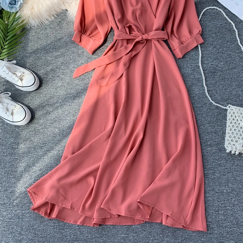 Женское длинное летнее платье, с V-образным вырезом и поясом