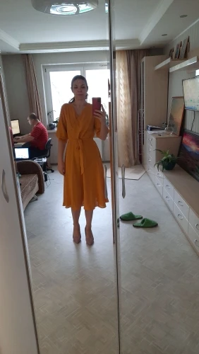 Красивое платье. Не так уж плохо, цвет очень приятный. У меня рост 166 см, платье выше колена. К сожалению, он мне не подходит, идеально подходит для моей талии, но он слишком большой на спине, посмотрите, можно ли изменить