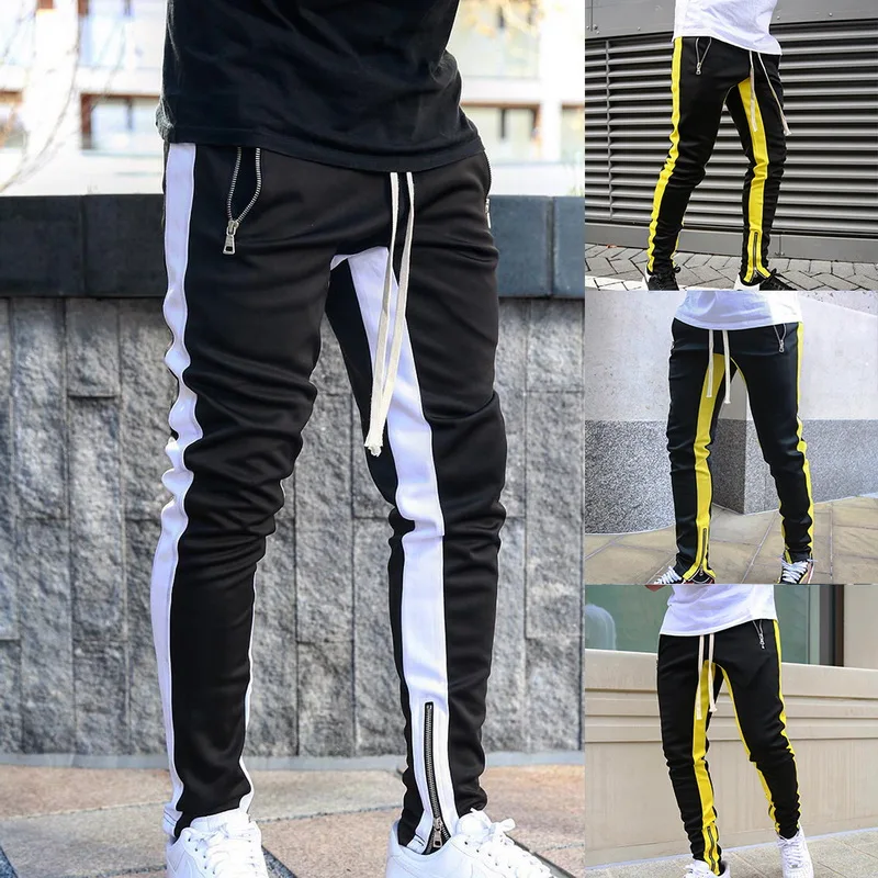 Черный тренажерные залы Jogger молния трек Штаны мужские повседневные брюки для пробежек Штаны Фитнес спортивная одежда Спортивные штаны узкие спортивные Штаны брюки