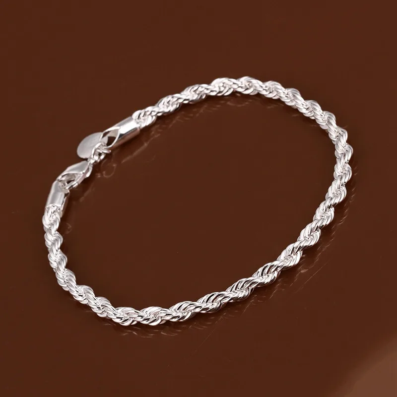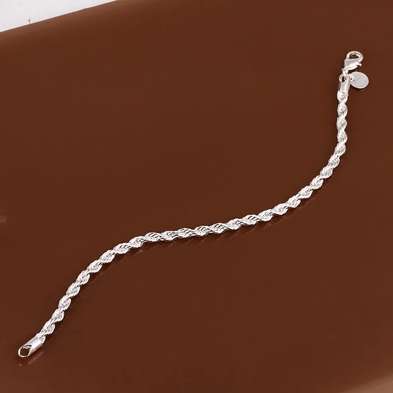 Твердые 925 серебряные браслеты для женщин и мужчин 4 мм браслет с ...