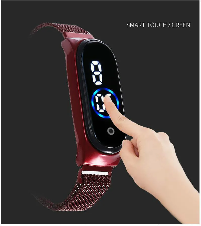 Женские Спортивные Повседневные светодиодные часы, женские цифровые часы, мужские Модные наручные часы с магнитным ремешком из нержавеющей стали, часы для пары