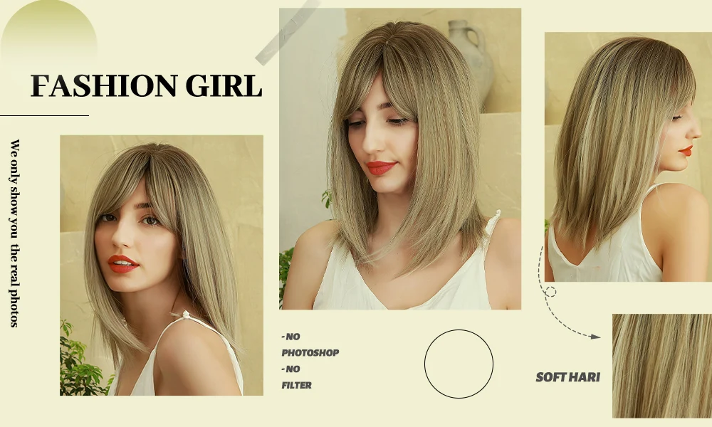 ESIN синтетический Серый Золотой средней длины прямой парик с челкой INS Косплей натуральные парики для женщин термостойкие волосы