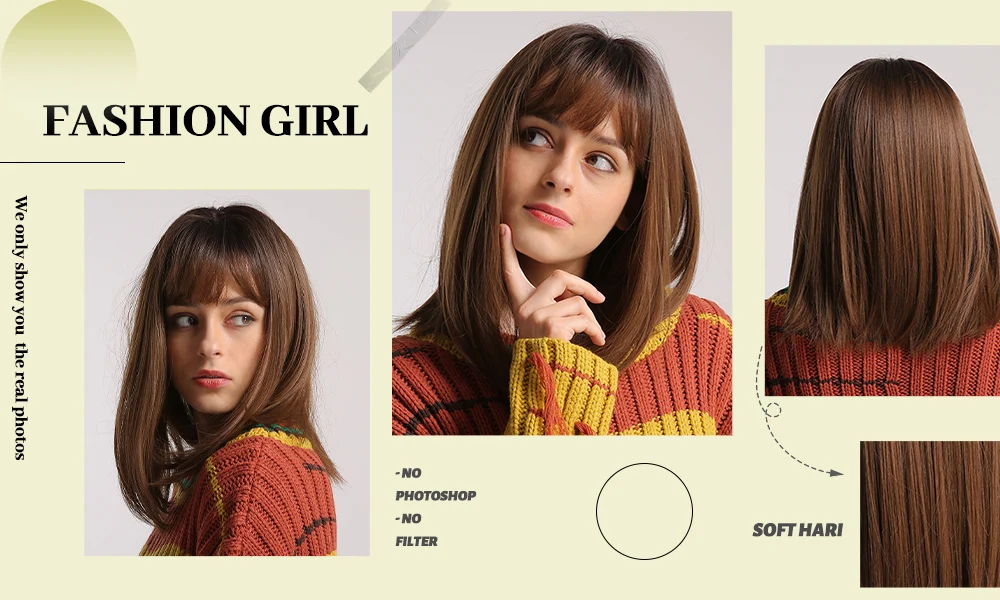 ESIN синтетические волосы темно-коричневые парики средней длины с в...