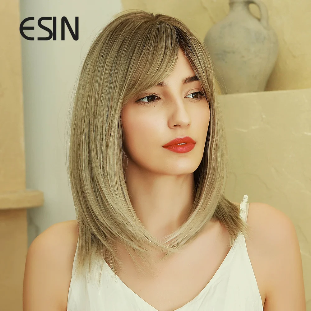 ESIN синтетический парик Боб блонд с челкой парики средней длины во...