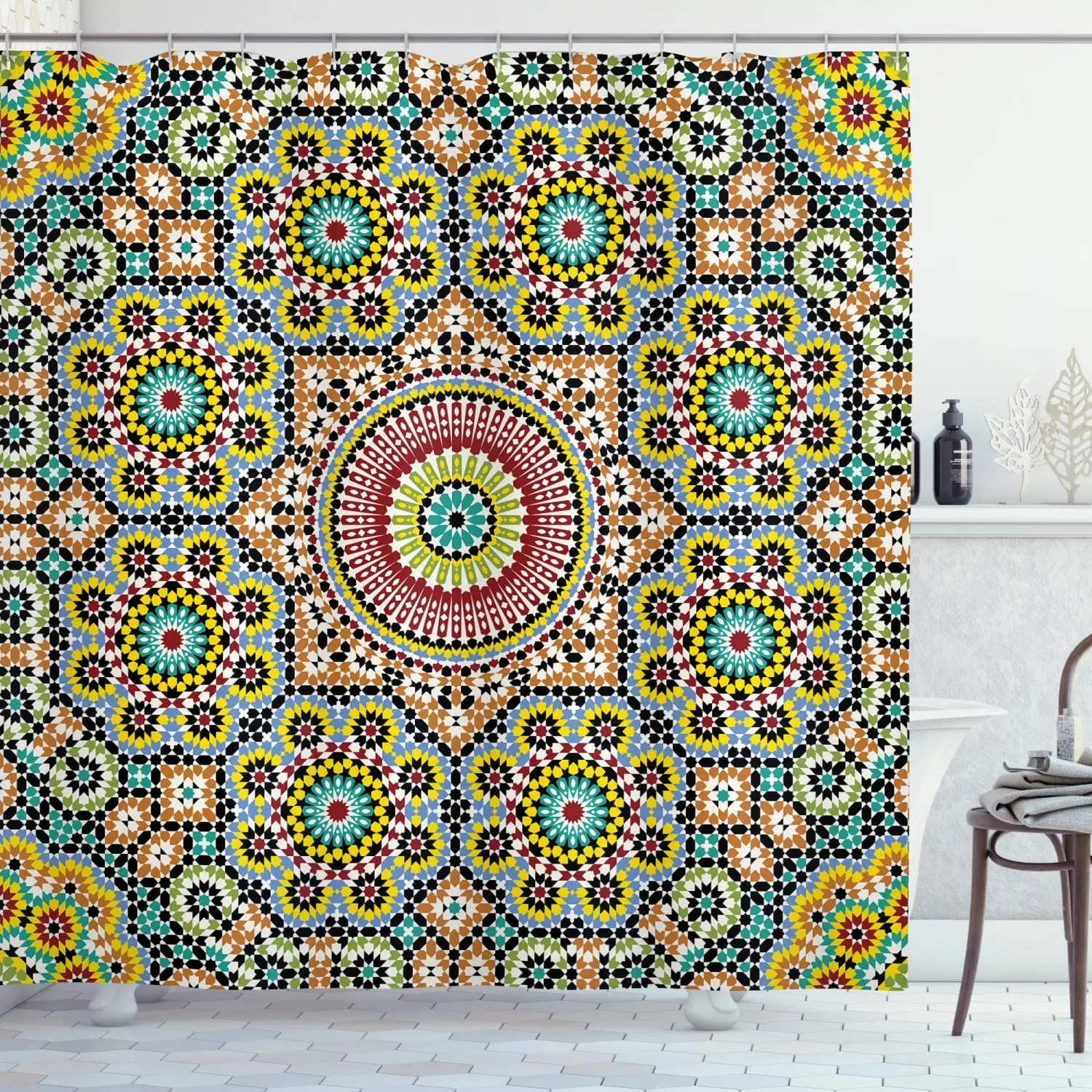 Марокканская занавеска для душа, декоративный набор для ванной комнаты с крючками, 75 дюймов, для декора старого дизайна, культурная гравировка, история искусства, достопримечательность