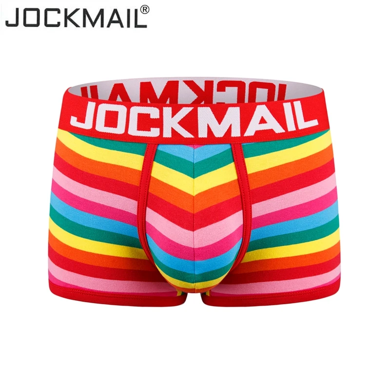 Трусы-боксеры jockmail мужские с низкой посадкой, пикантное нижнее белье, дышащие шорты в радужную полоску, трусы для геев, 2020