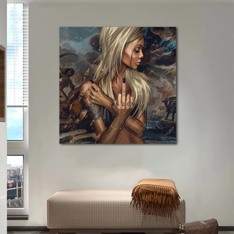 Крутая сексуальная девушка тату абстрактная Современная Картина на холсте постеры принты квадратные картины на стену гостиная домашний декор