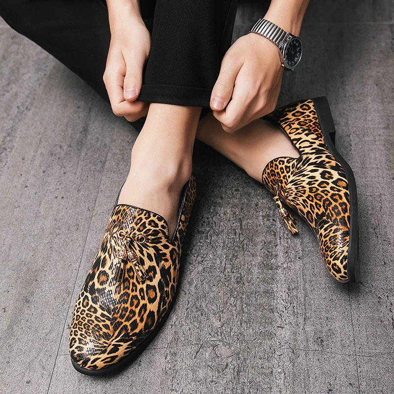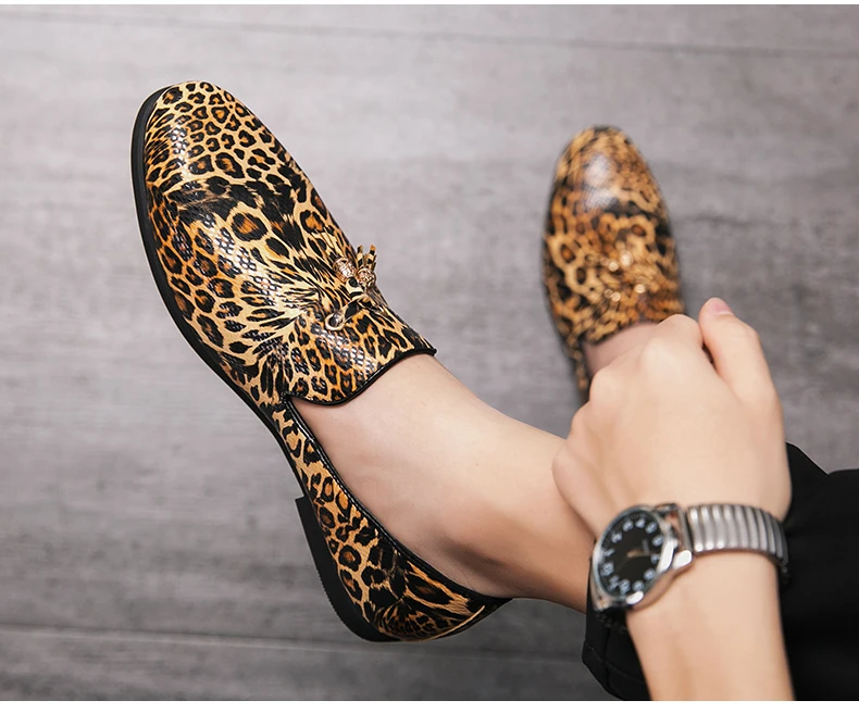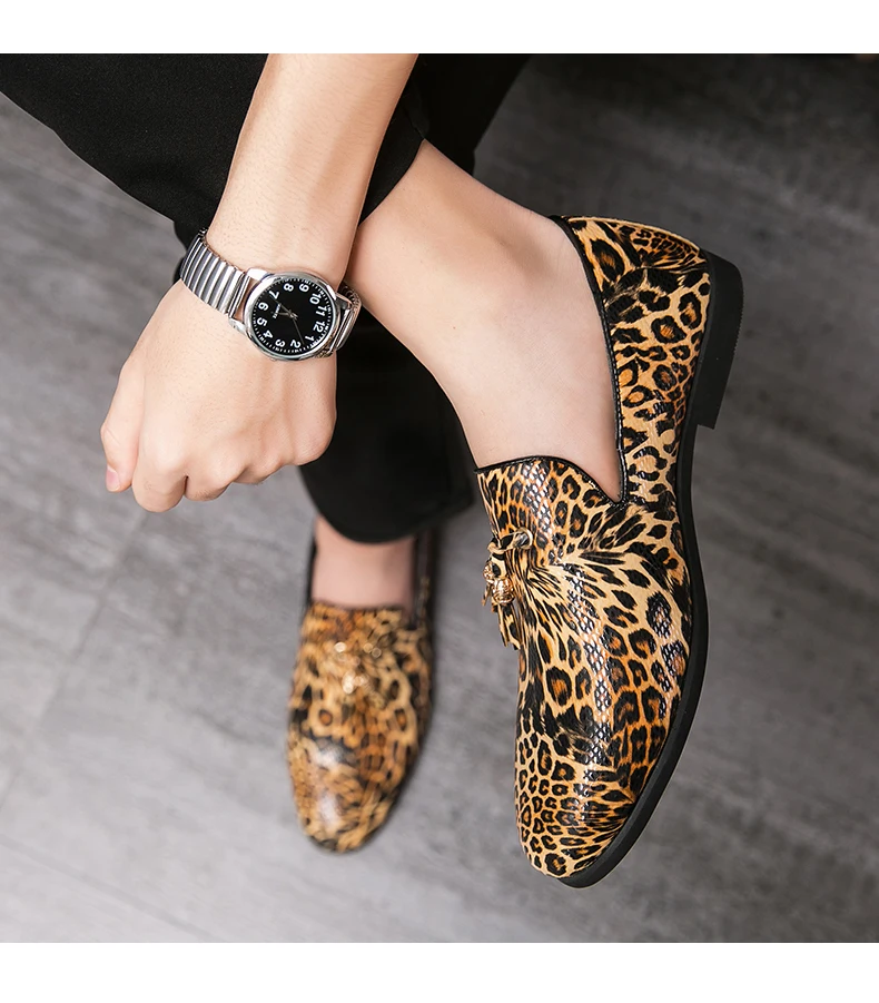 Классические мужские туфли-оксфорды, модная классическая Свадебная обувь с леопардовым принтом, размеры 38-48