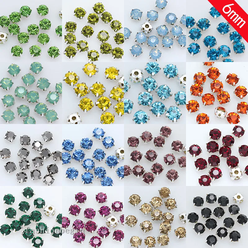 36p 6 мм 36-цветные Стразы с кристаллами для шитья драгоценности серебряная основа с 4 отверстиями для шитья стеклянный камень драгоценные камни кнопка для рукоделия одежда