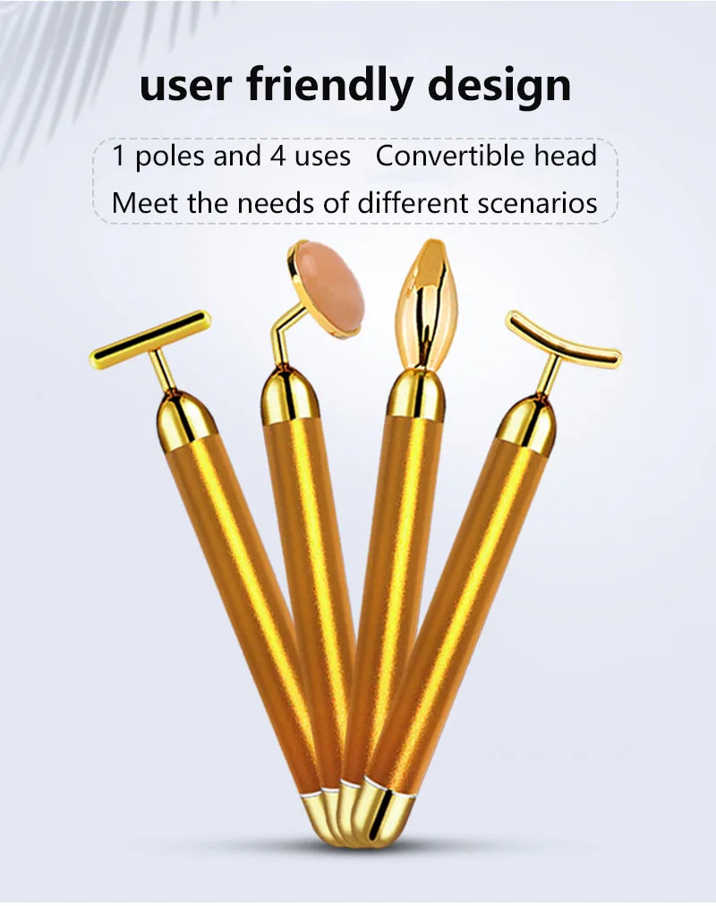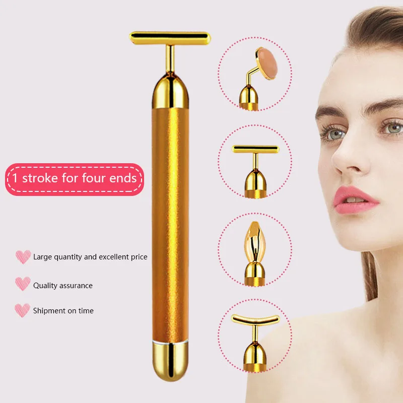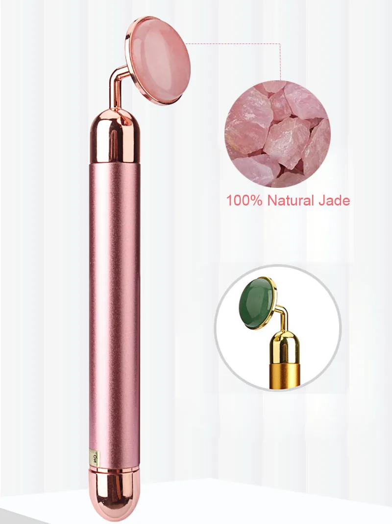 4 в 1, вибрирующий роллер из розового кварца для лица