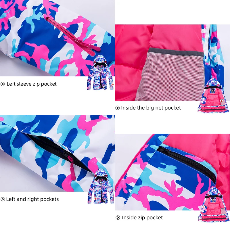 Лыжные костюмы для девочек, теплые водонепроницаемые детские лыжные куртки для сноуборда + штаны, зимний детский комплект лыжной одежды, зимние пальто