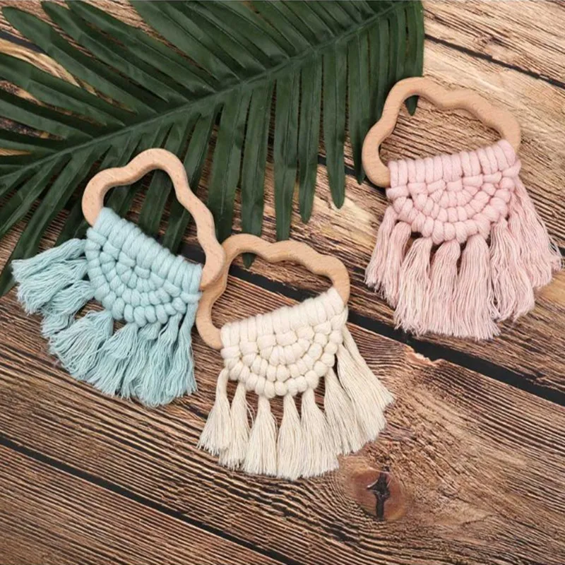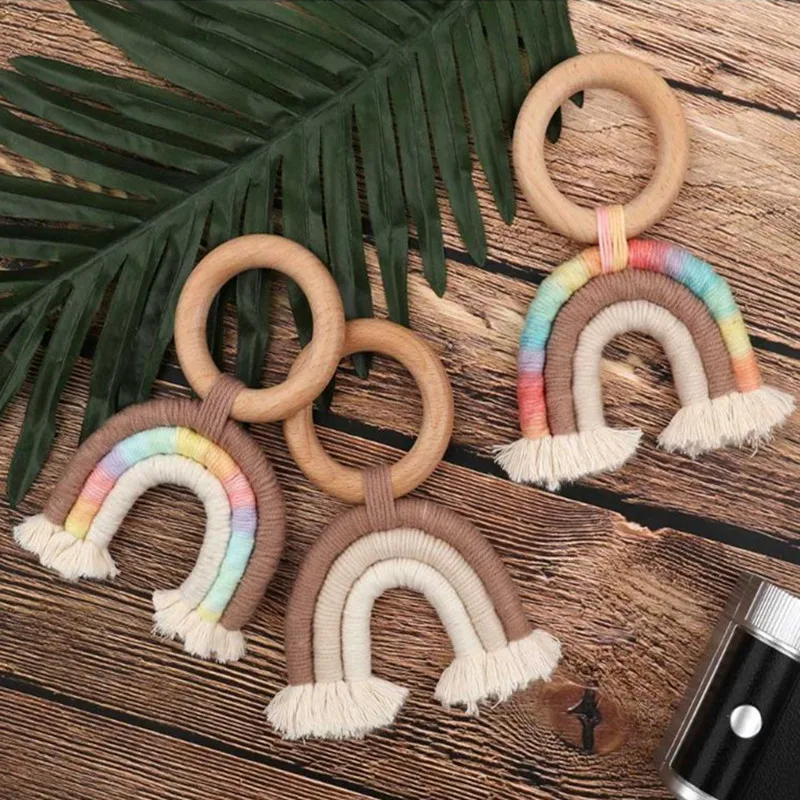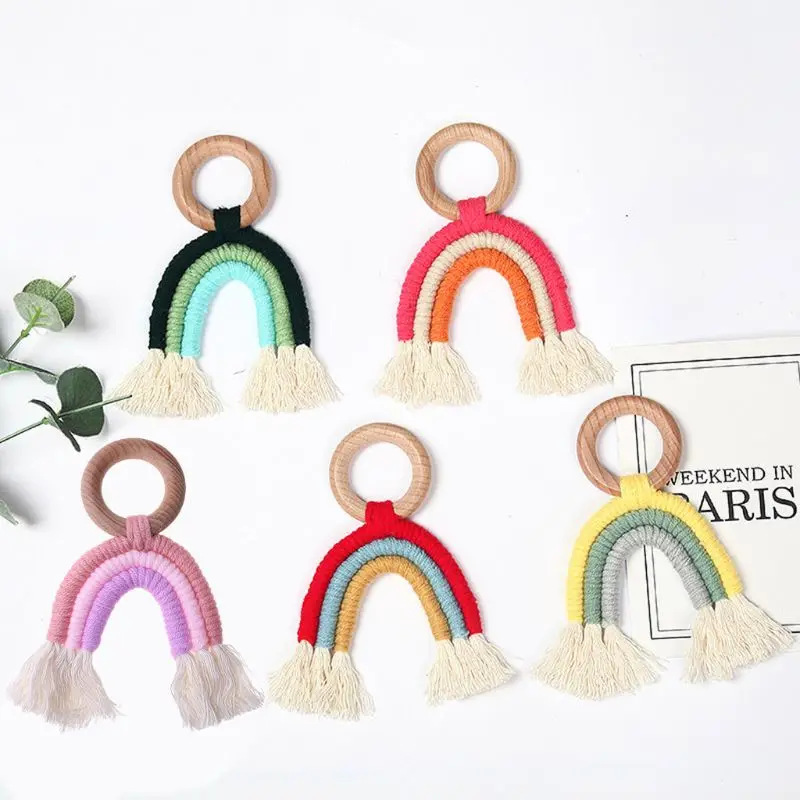 Радужная кисточка макраме деревянный детский Прорезыватель для зубов деревянное погремушечное кольцо для новорожденных уход Прорезыватель для зубов сенсорный моляр рандомные подарки