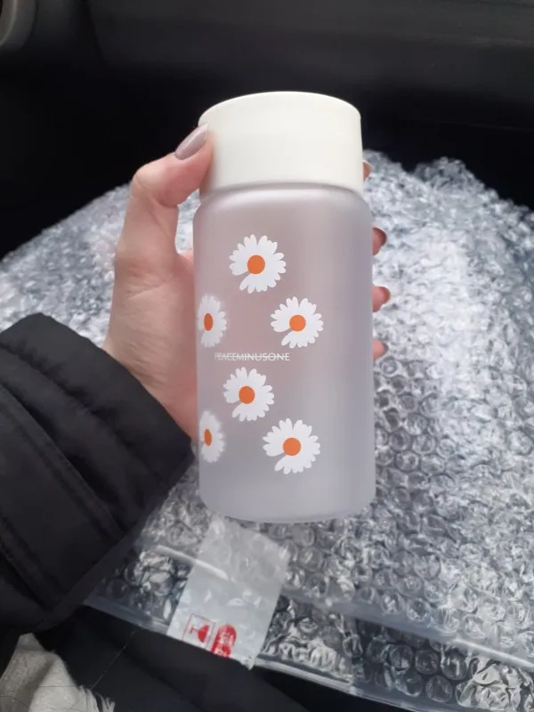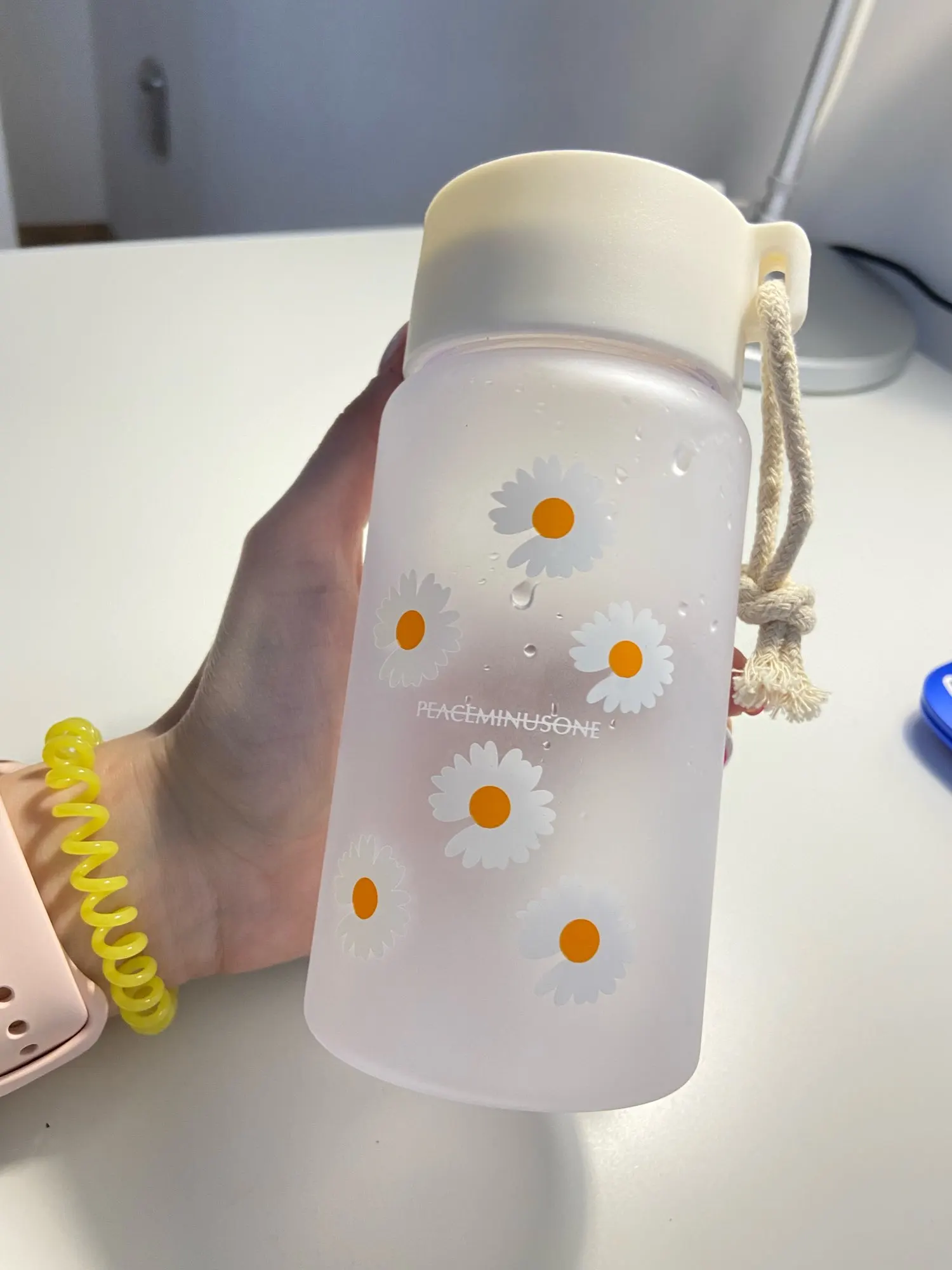 Прозрачная пластиковая бутылка для воды с маленькими маргаритками, 500 мл, без БФА, креативная Матовая бутылка для воды с веревкой, детская дорожная чайная чашка для девочек