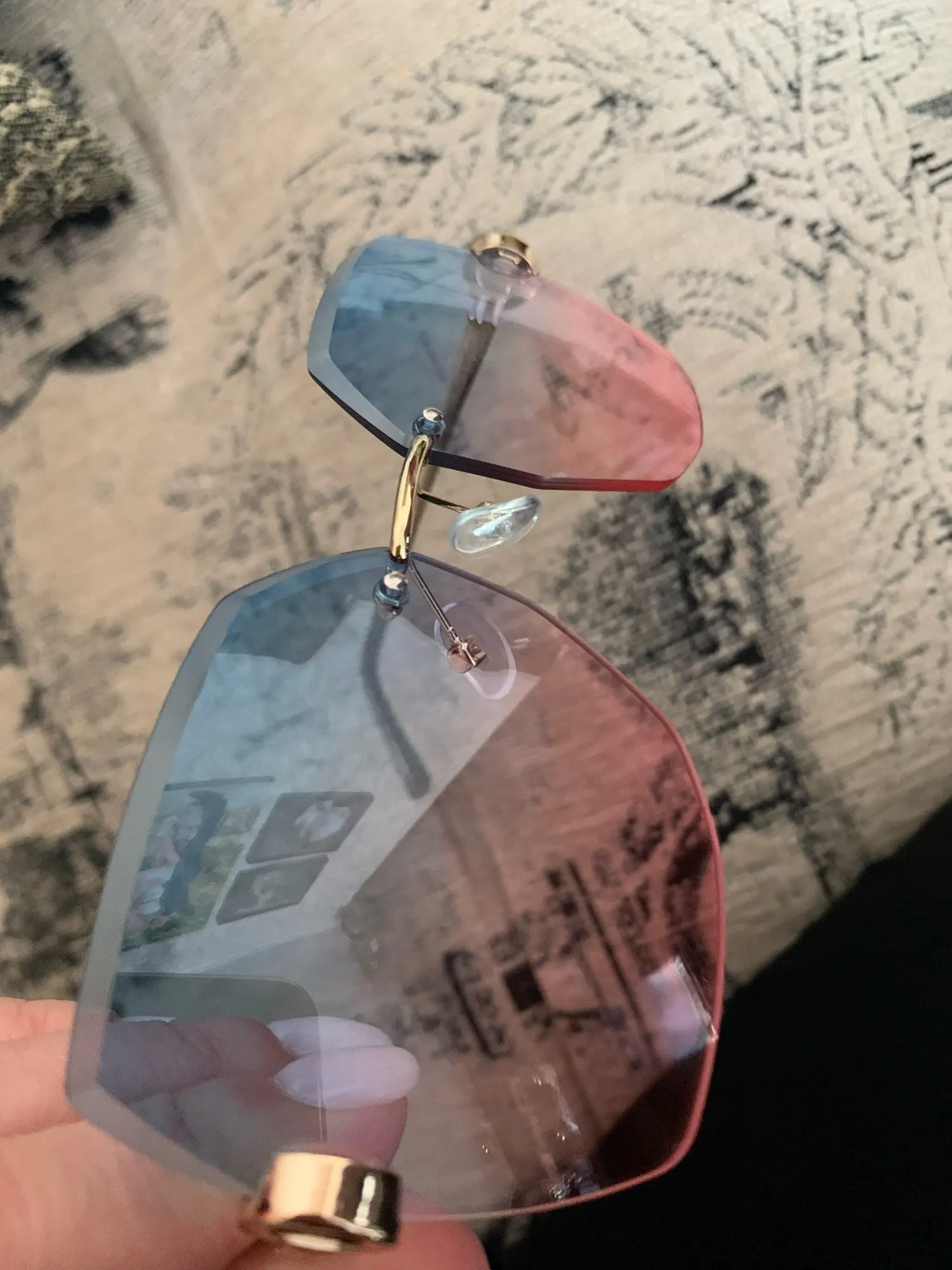 Классные, стильные очки с плавным градиентом на широкое лицо. Отличная, воздушная упаковка. Доставка товара в указанные сроки. Очками очень довольна, рекомендую к покупке тому, у кого крупное лицо. Спасибо за качественный товар.