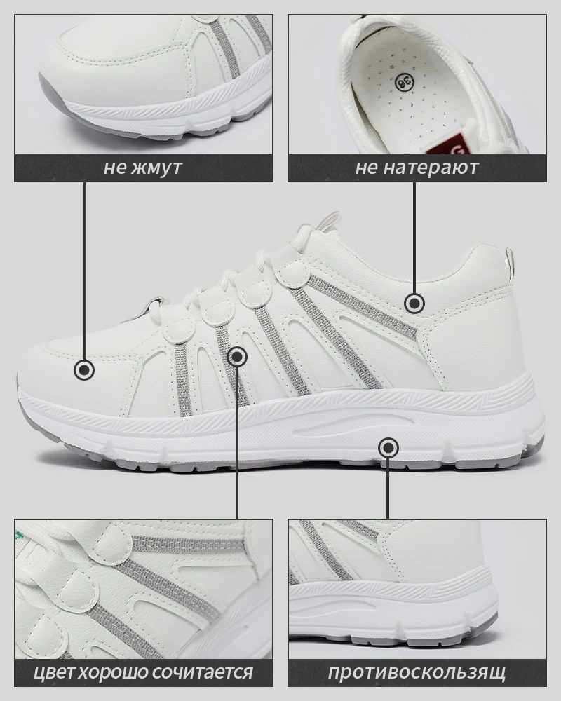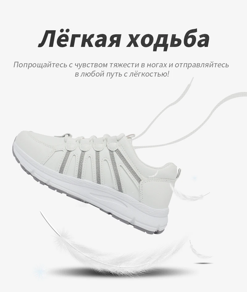Кроссовки женские кожаные, мягкие дышащие, без шнуровки, плоская Ву...