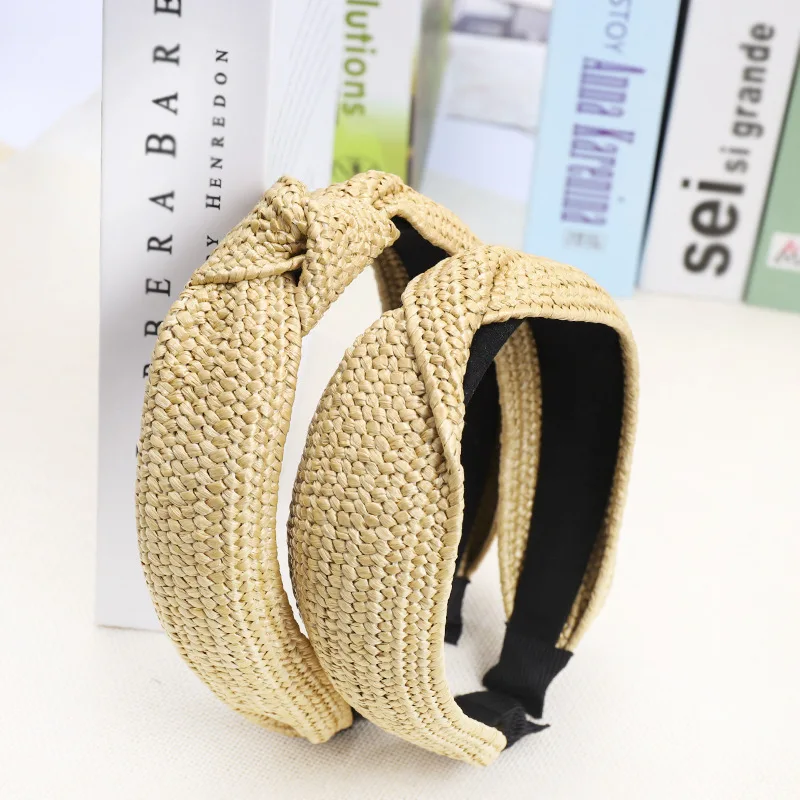 Ободок для волос из рафии с узлом Женский, однотонный ободок ручной работы в Корейском стиле, Новый ободок аксессуар для волос на весну и лето